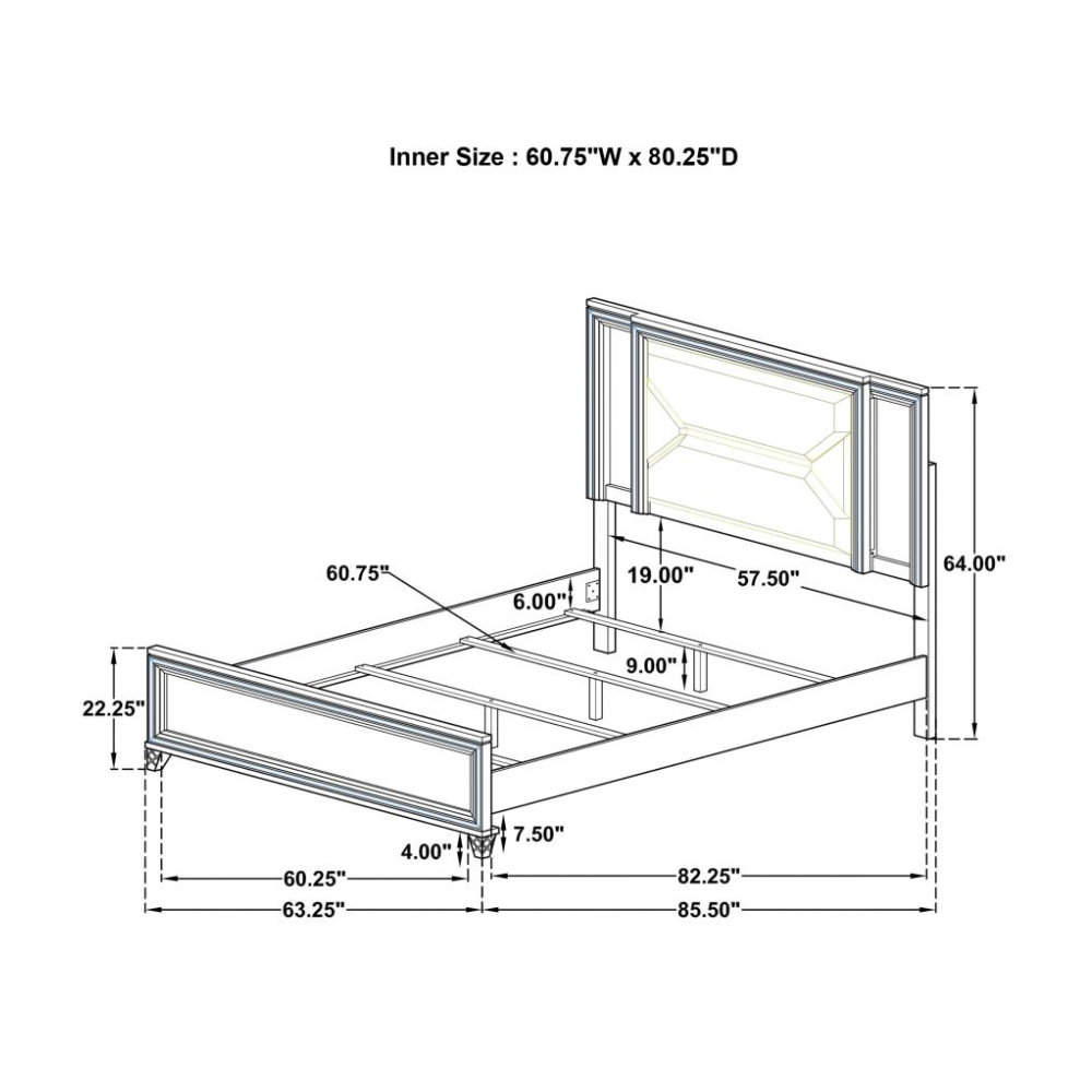 MARMORE 64-inch Queen Panel Bed LED Headboard