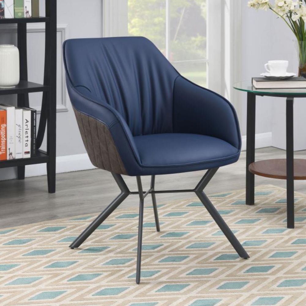 - Contrasting Upholstery: Chair back features diamond-quilted brown suede-like leatherette, while the front has a sleek blue leatherette cover.