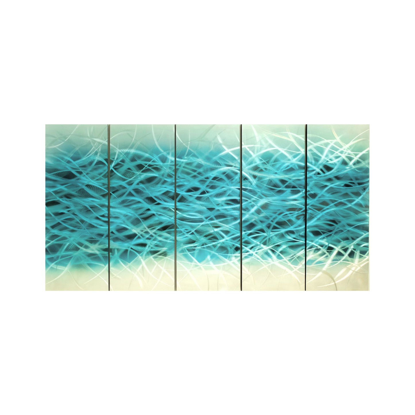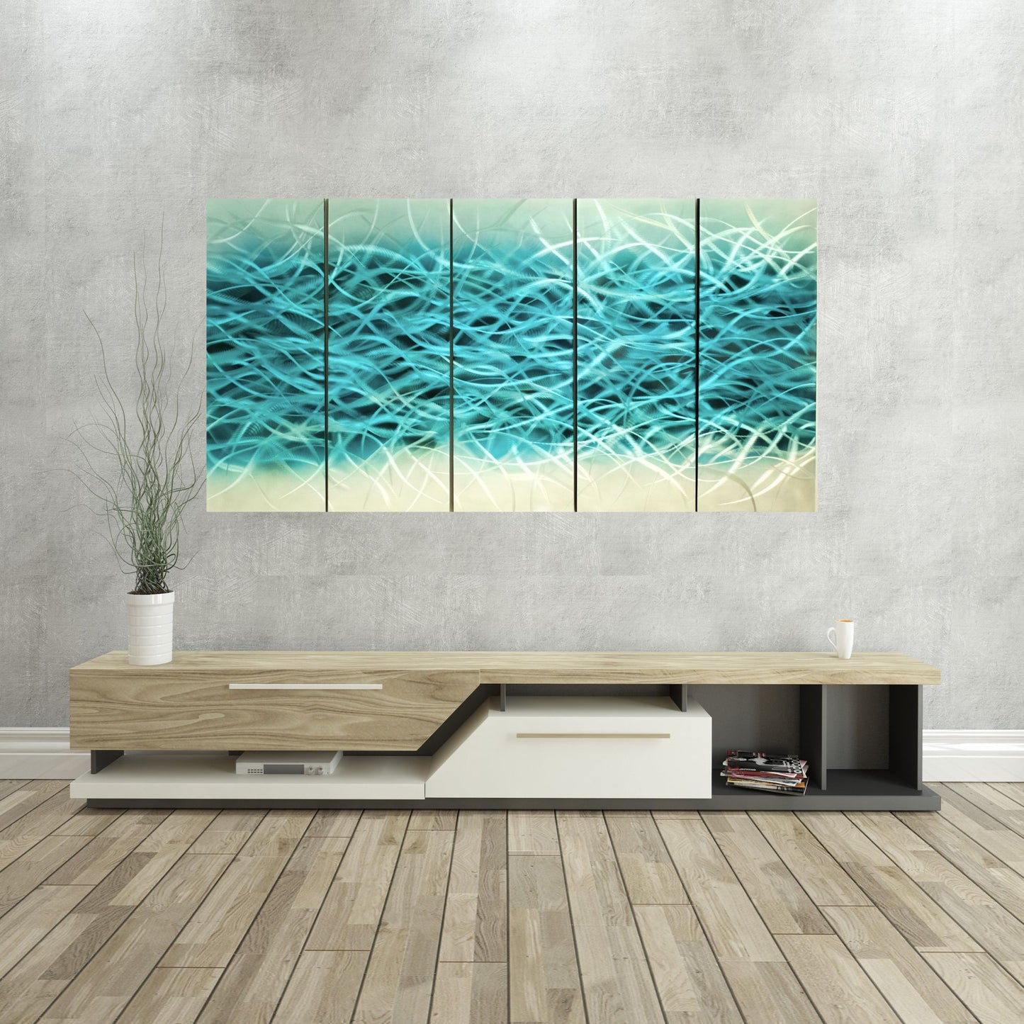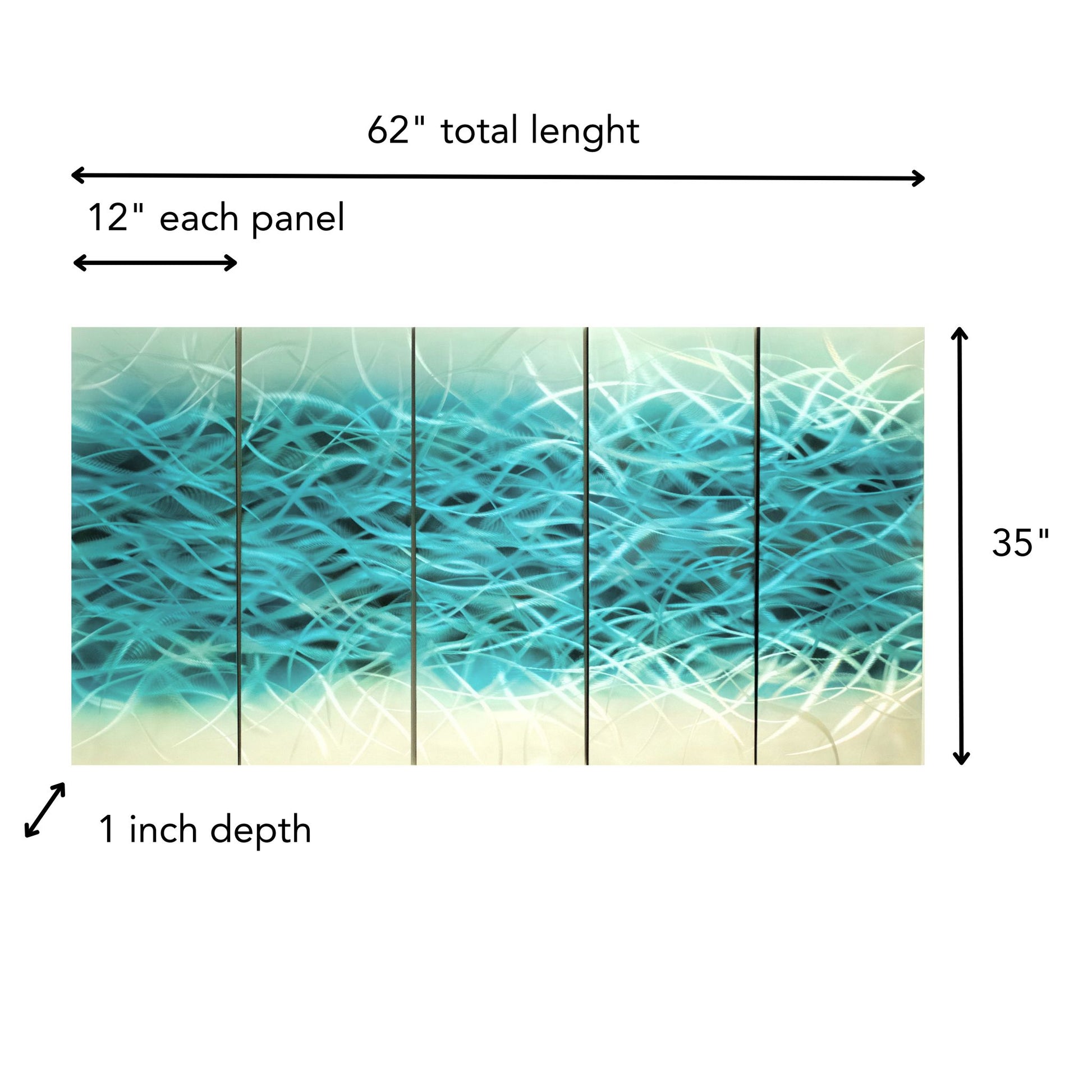 Turquoise Abstract Metal Art Set of 5 Aluminum Panels