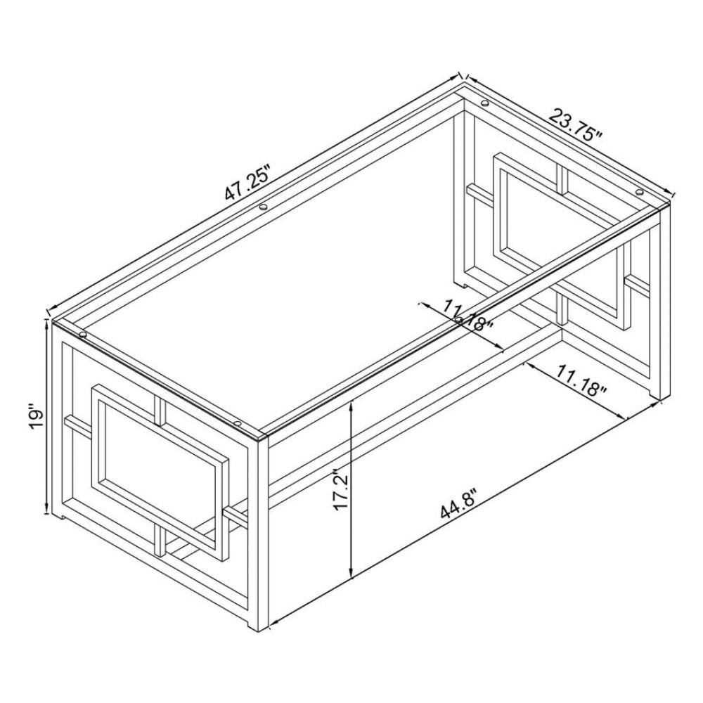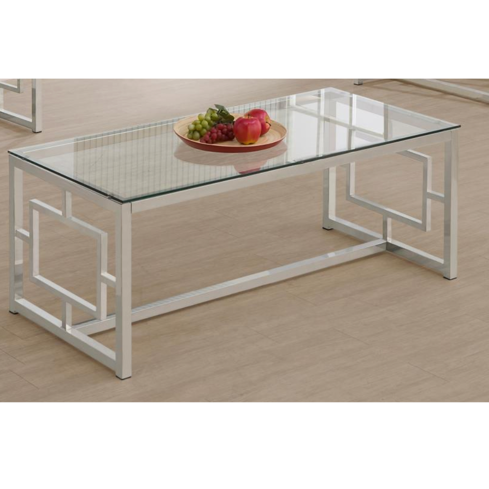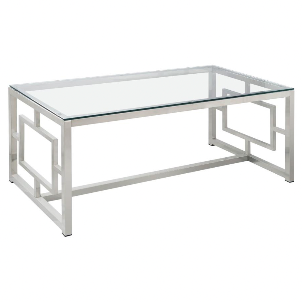 Add a touch of sophistication to your living space with this stunning coffee table. Featuring sleek lines and an elegant design, its eye-catching geometric frame offers a bold, contemporary edge. The brilliant nickel finish enhances its striking silhouette with a dazzling shine, while the rectangular tempered glass top provides a stylish and durable surface. Perfectly paired with a matching end table and sofa table, this coffee table infuses your living room with modern flair and functionality.