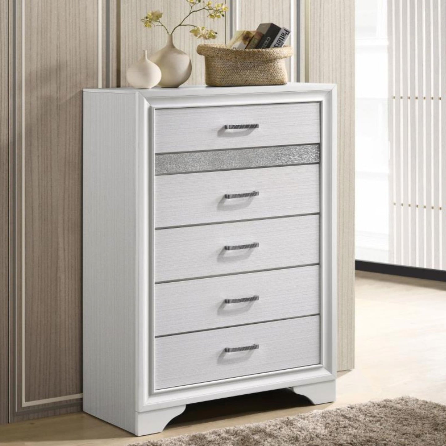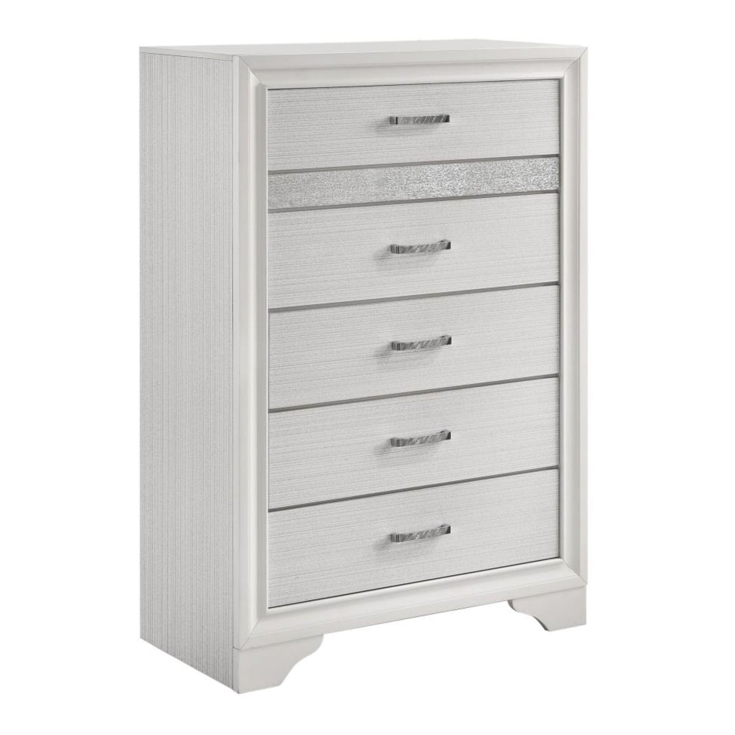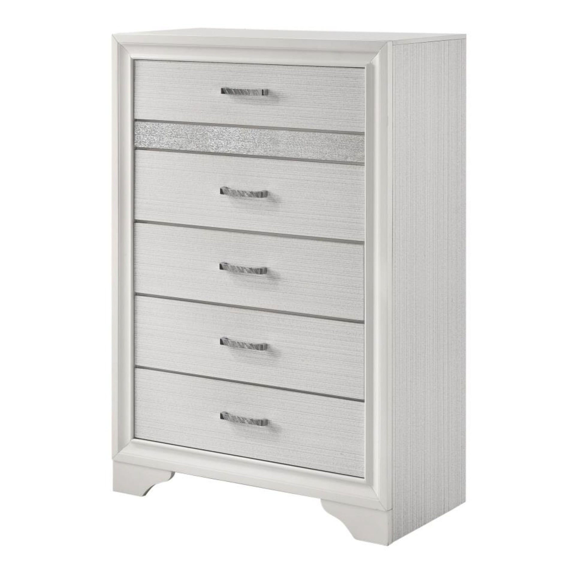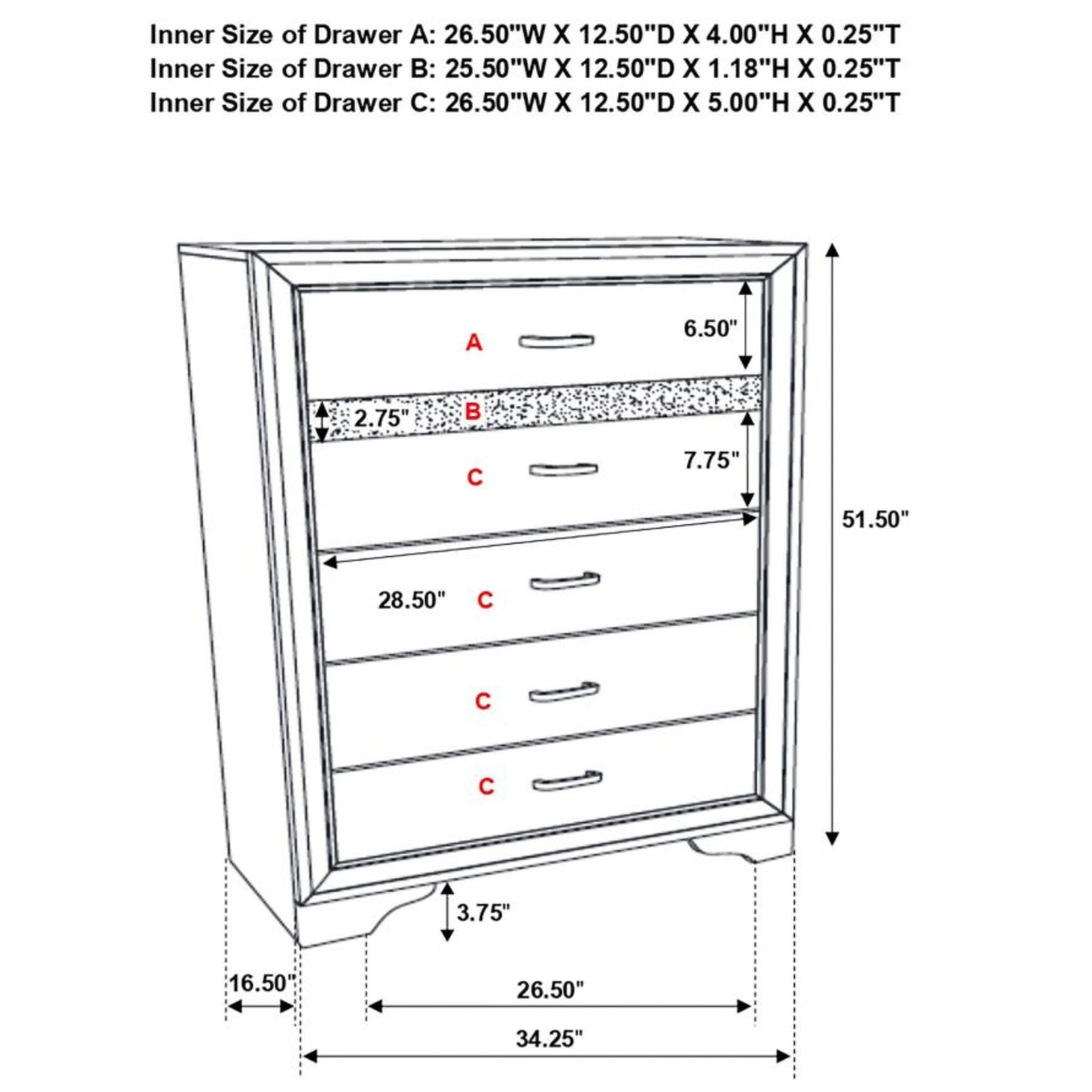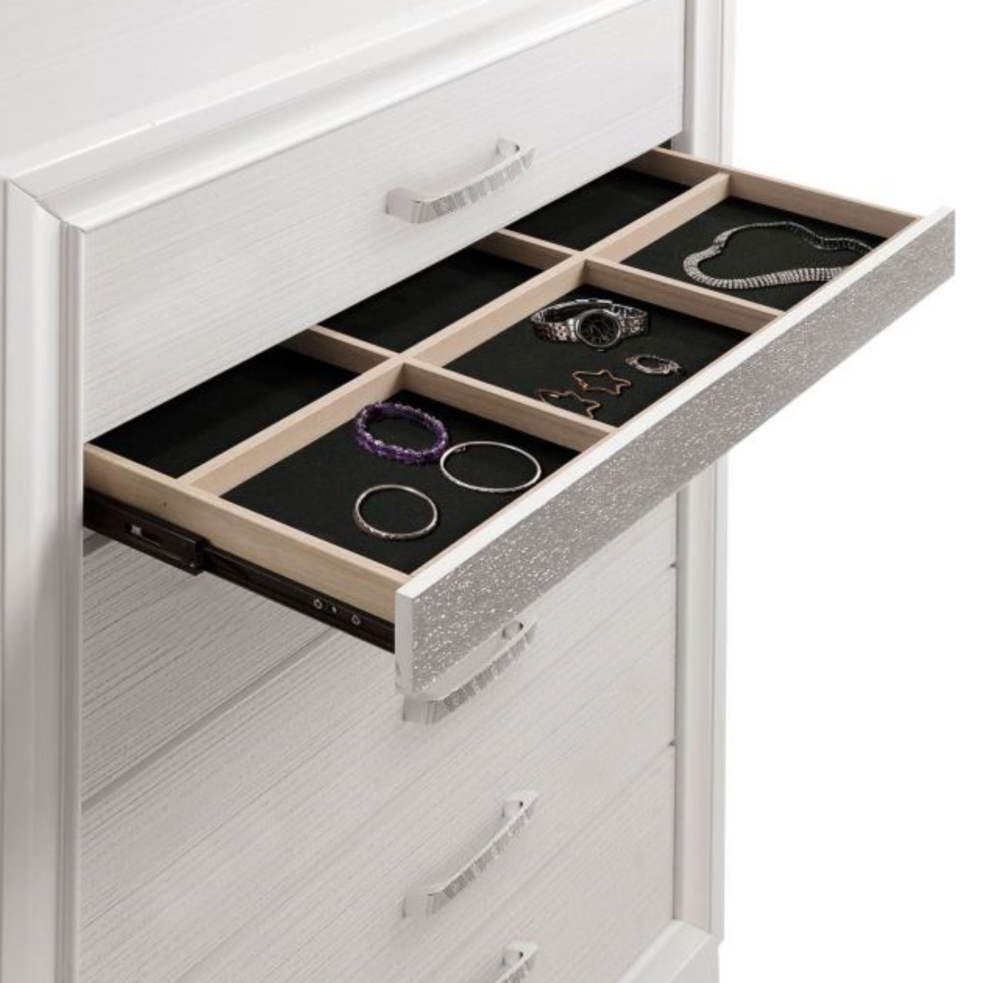 Upgrade your bedroom decor with the addition of this chic and stylish chest, designed to infuse your space with posh, upscale ambiance. Its dazzling touch of sparkle adds a glamorous flair to any room, while the hidden jewelry drawer ensures your valuable items are kept safe and secure. With its luxurious felt-lined drawers and five convenient drawers built with full extension glides, this chest offers both functionality and sophistication to your space.