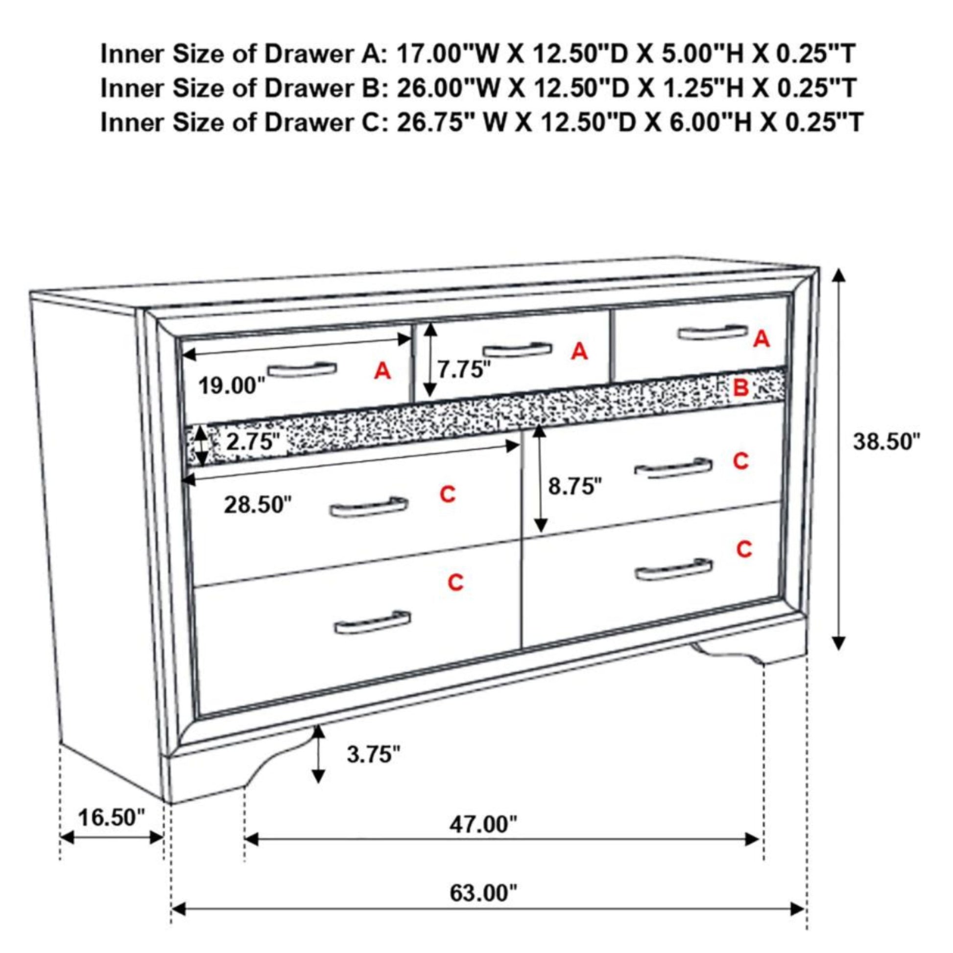 MIRANDA 7-drawer Dresser White and Rhinestone