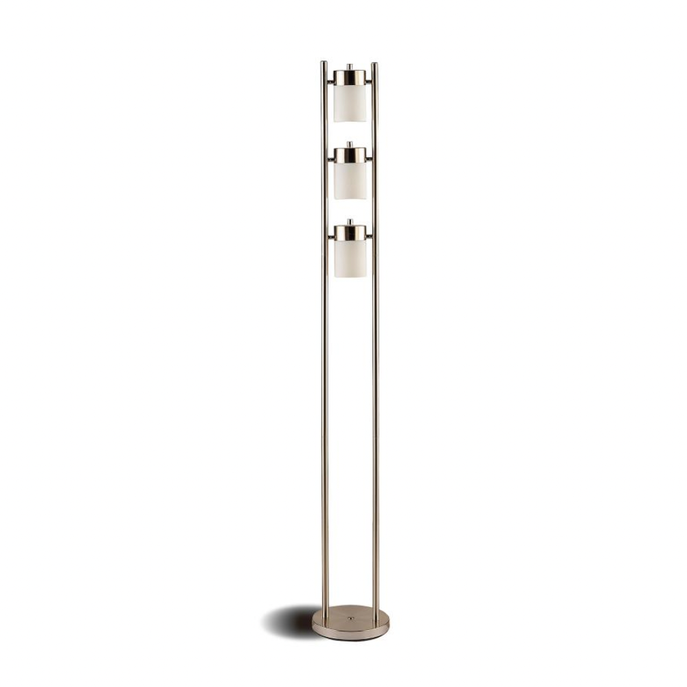 Bring graceful sophistication to your space with this ultra-modern floor lamp, inspired by minimalist Japanese design. Featuring a tall triple "H" frame in a brushed silver finish, this artistic piece includes three adjustable horizontal arms with frosted glass cylindrical shades. Each lamp swivels to direct light precisely where you need it, adding both form and function to your living room or study. A two-way foot switch provides effortless control, making this floor lamp an elegant and practical addition to contemporary interiors.