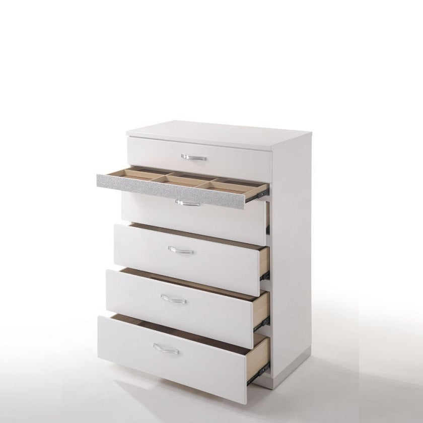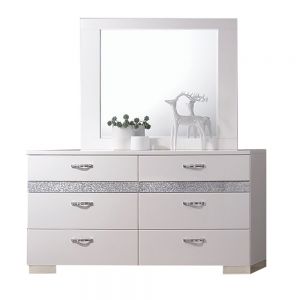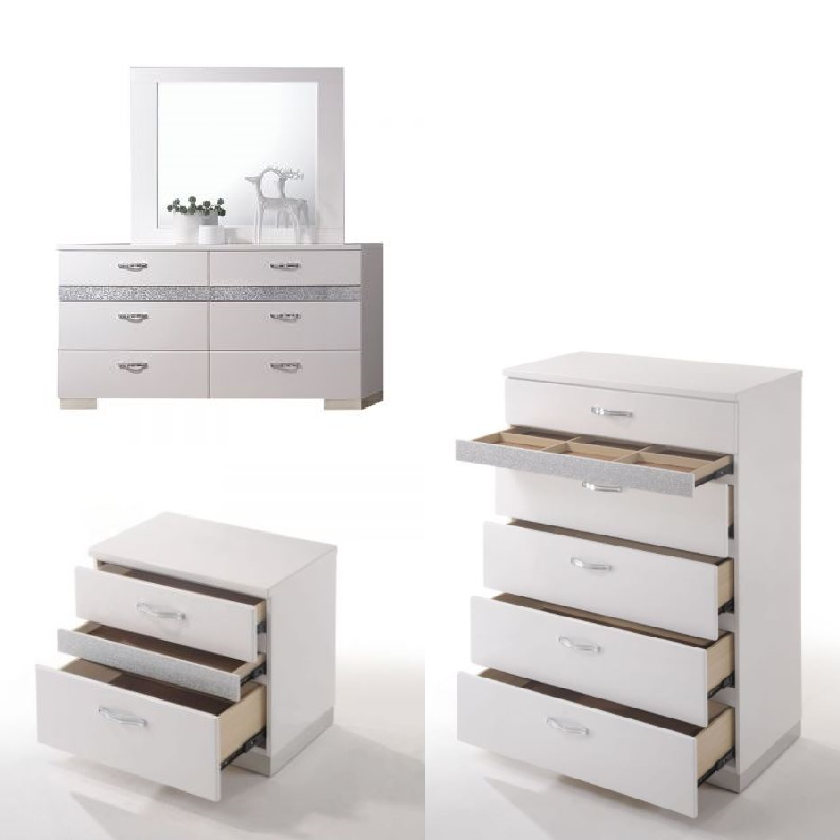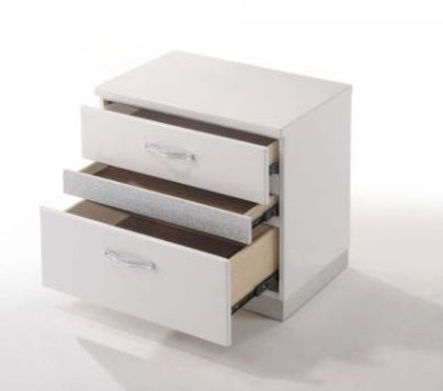 Introducing the NAIMA Collection, a blend of glamour and functionality that brings a touch of luxury to your bedroom. This collection in glossy white with chrome accents is designed to elevate your space. Immerse yourself in the opulence of the NAIMA Collection, where glossy white meets chrome accents in a harmonious blend of style and functionality. This collection is designed to make a statement in your bedroom, creating a space that reflects your unique taste and personality.
