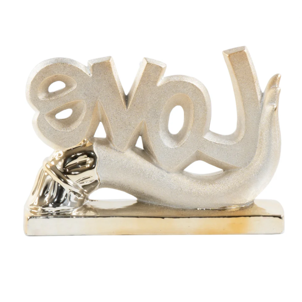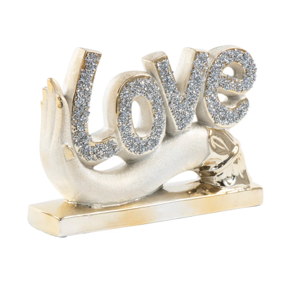 Celebrate the essence of love with this gleaming modern love hand sculpture. This striking piece is designed to capture attention and add a touch of glamour to your home. Ideal for placing on a dresser or console table, it features high-grade ceramic construction finished with a luxurious silver or gold glaze and embellished with sparkling silver stones.