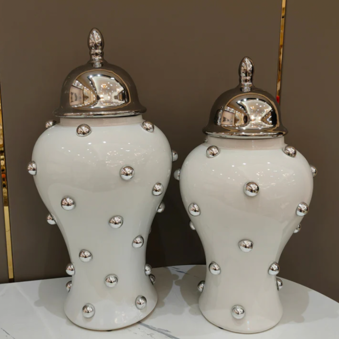 NEVIN 16" Decorative Ginger Jar Vase Silver