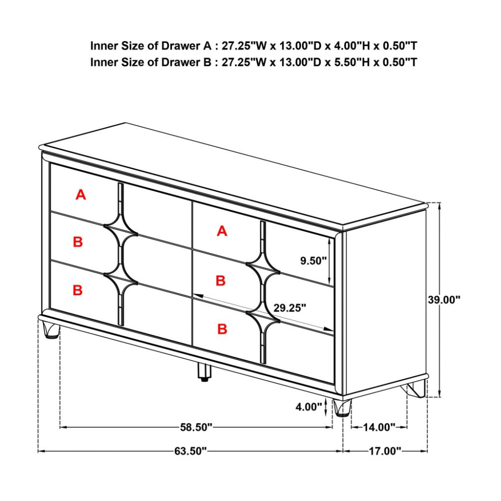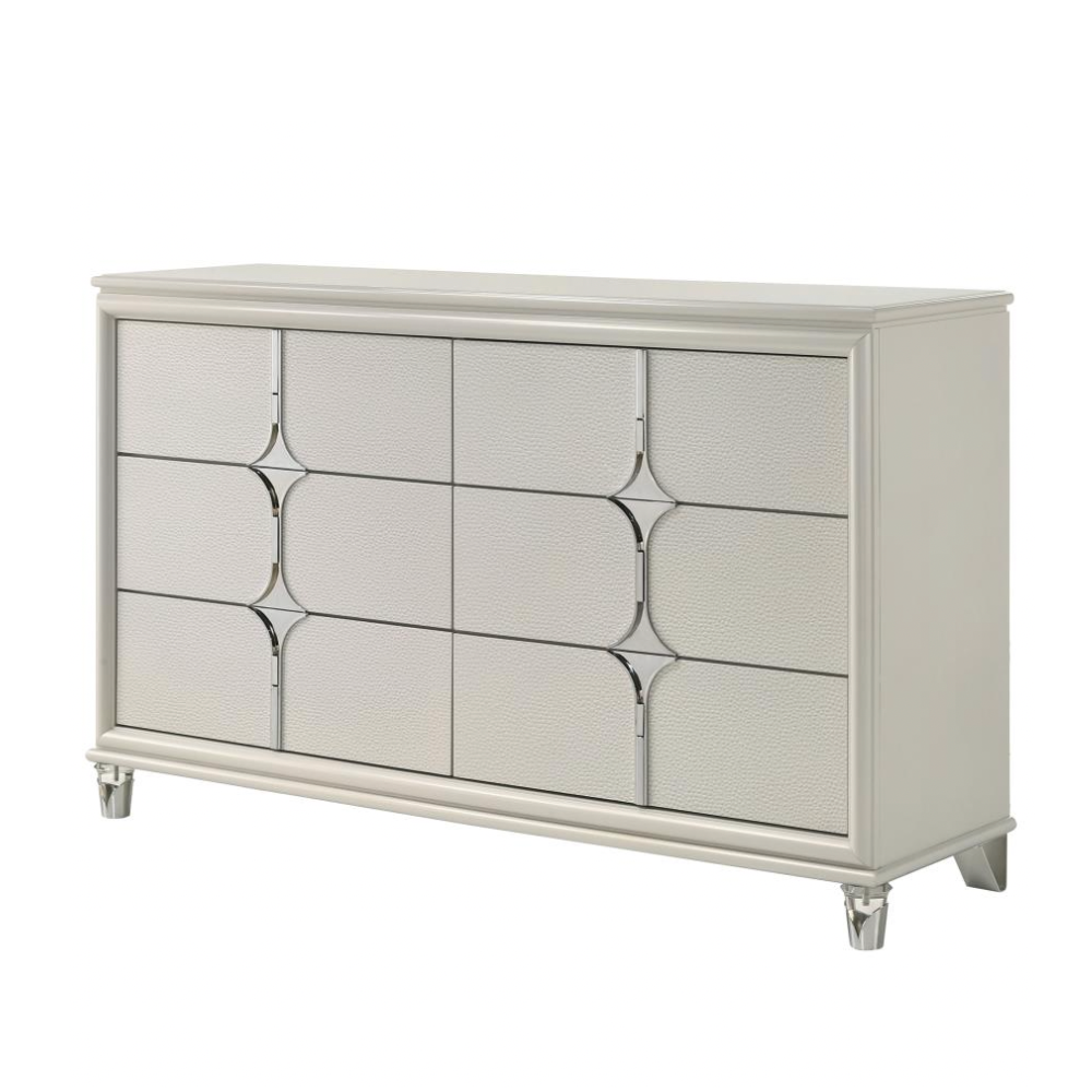 - Elegant Design: 6-drawer dresser in a luxurious pearl white finish.