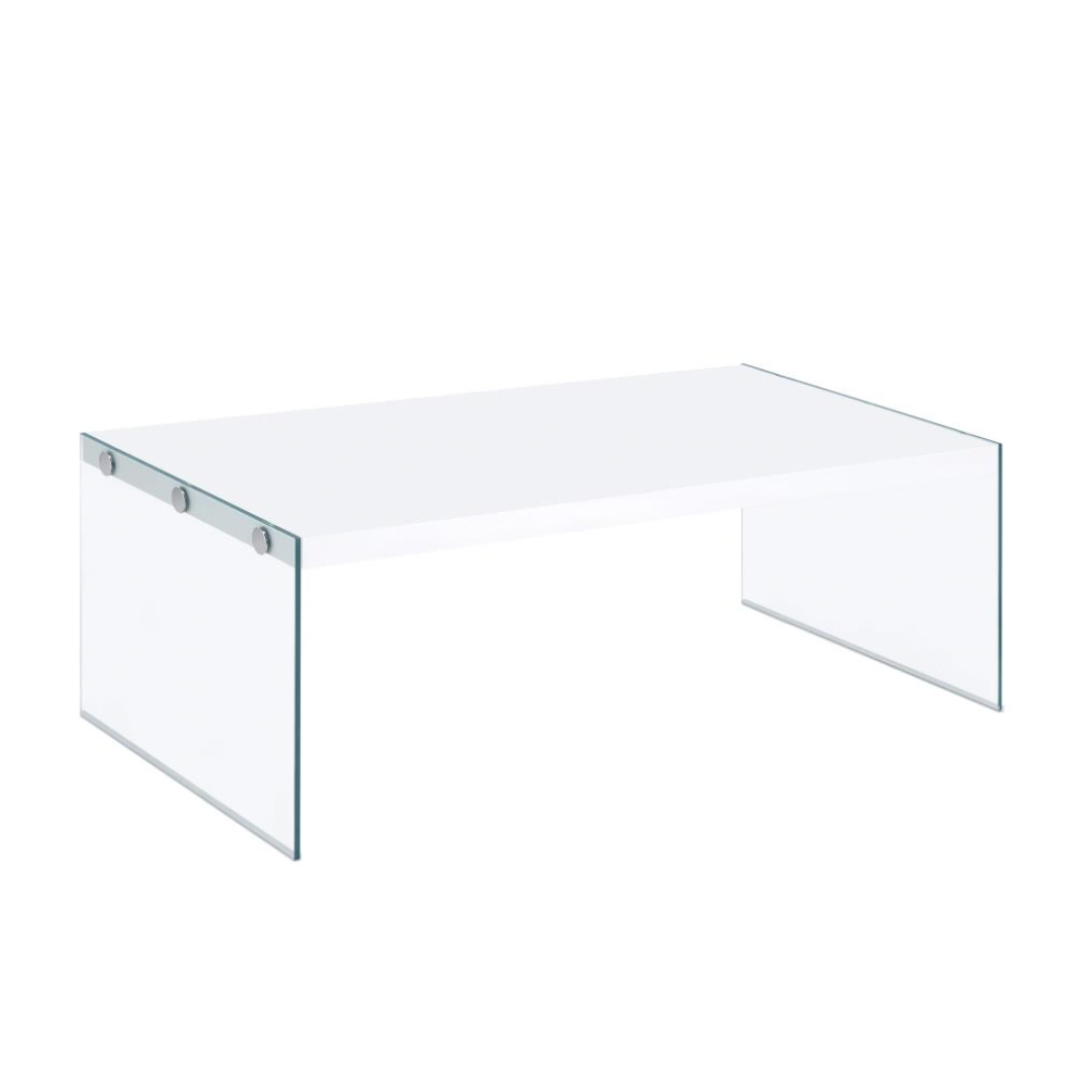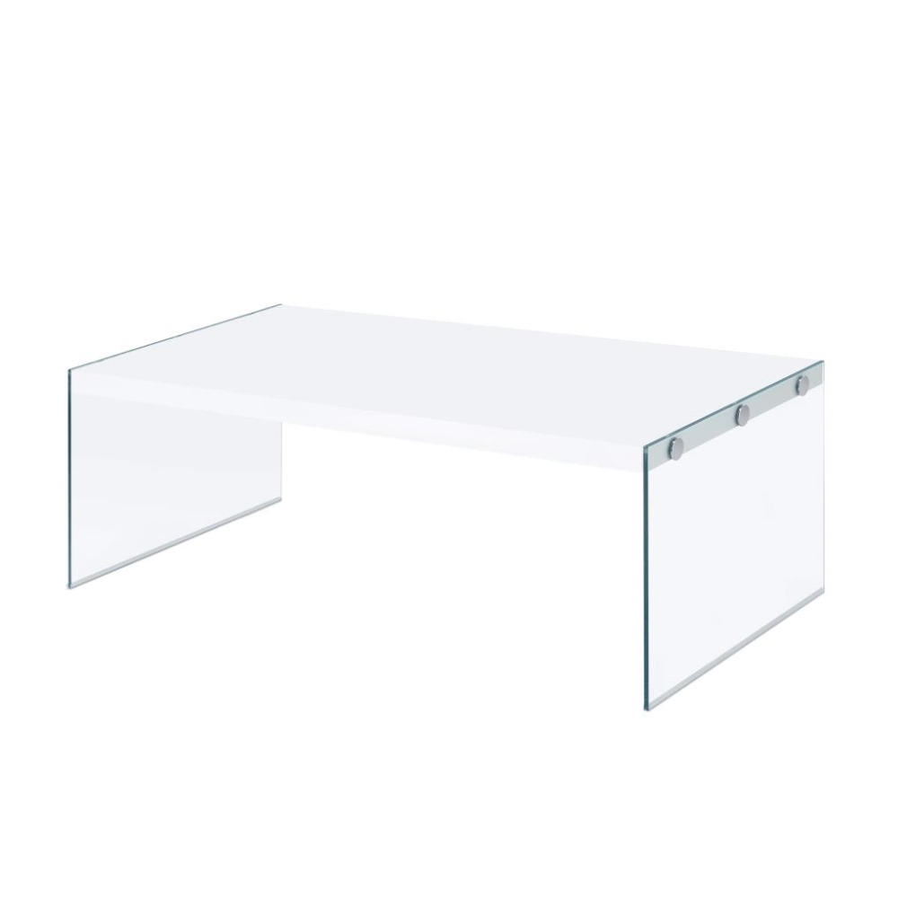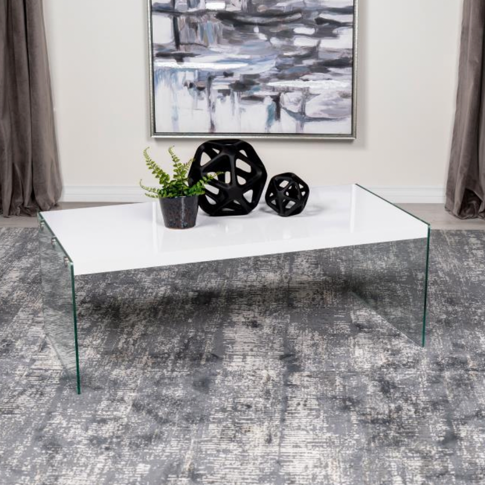Elevate your space with this ultra-modern rectangular coffee table, featuring a high-gloss white engineered wood top and clear tempered glass side panels for a floating effect. Its sleek silhouette and minimalist design make it an ideal centerpiece for contemporary living rooms. Built for both style and durability, this table is perfect for daily use or entertaining guests.