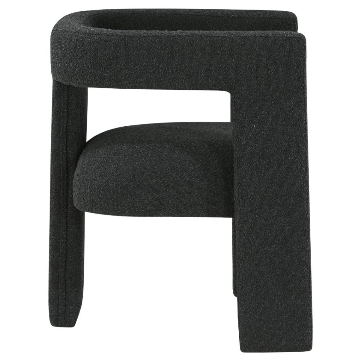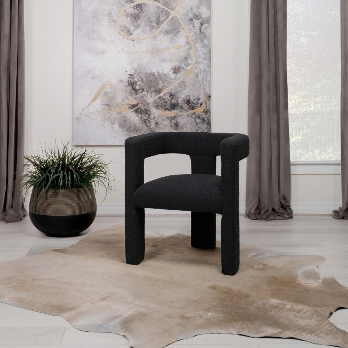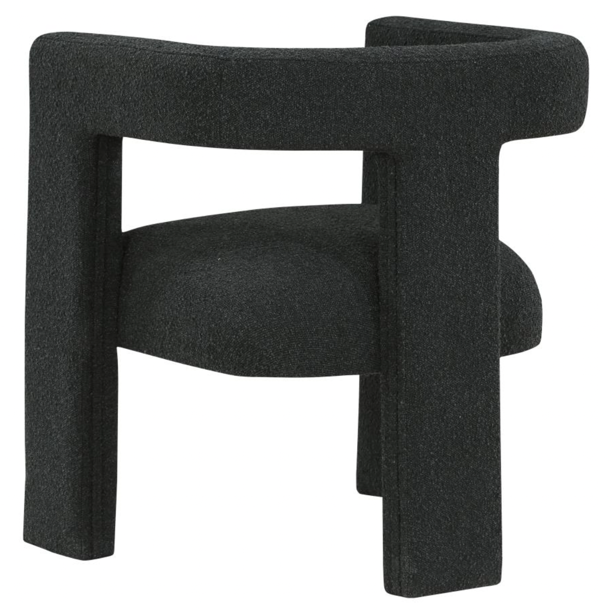 - Uninterrupted Bouclé Upholstery: The uninterrupted bouclé upholstery invites a serene tactile experience, transforming the chair into a modern sanctuary where every touch is a moment of pure luxury and comfort.