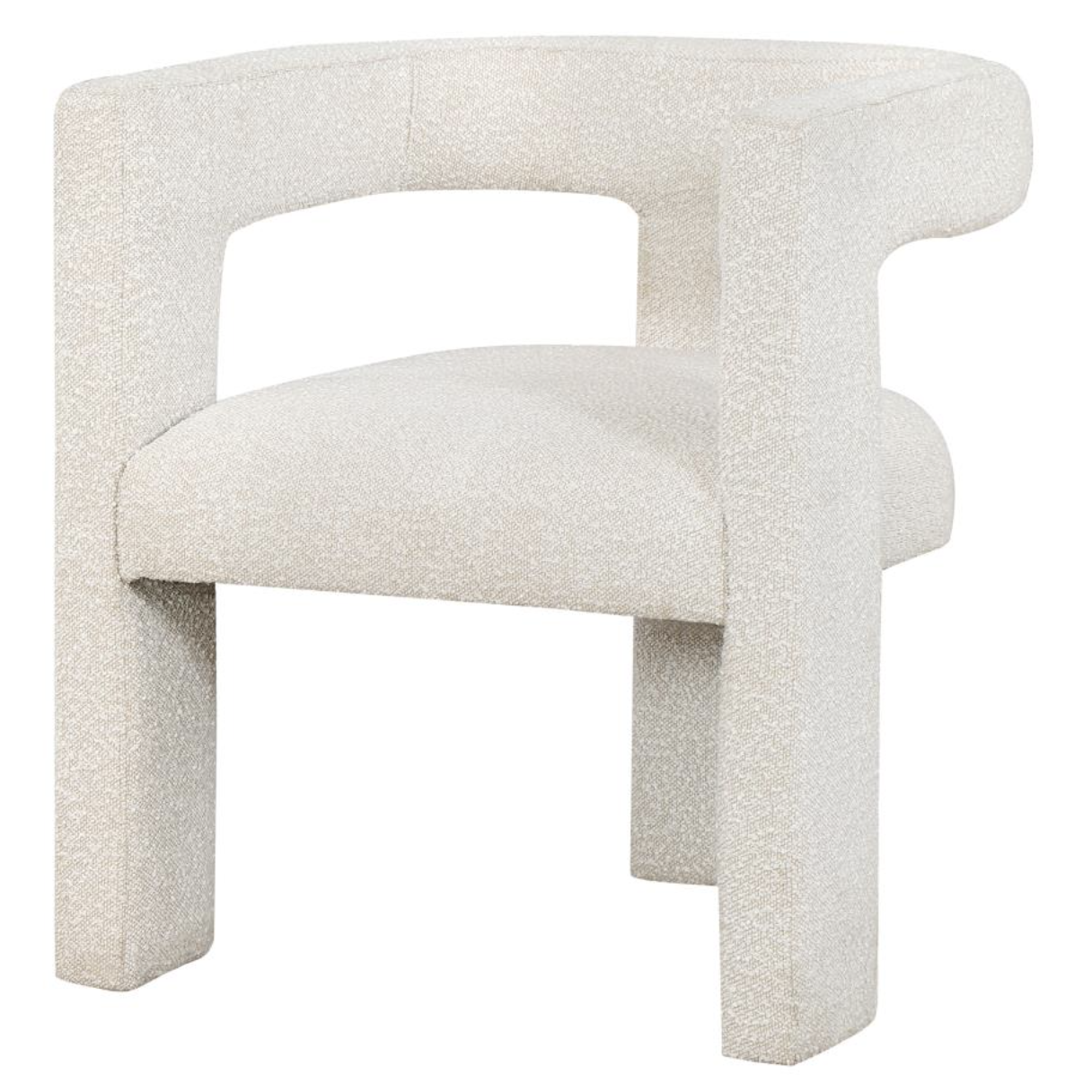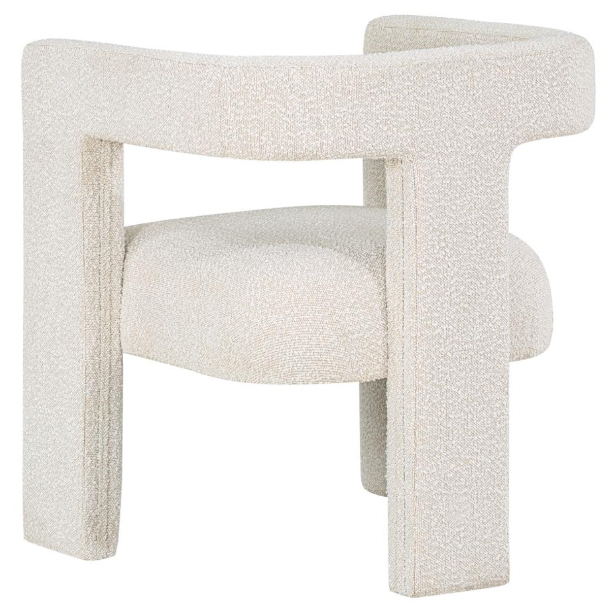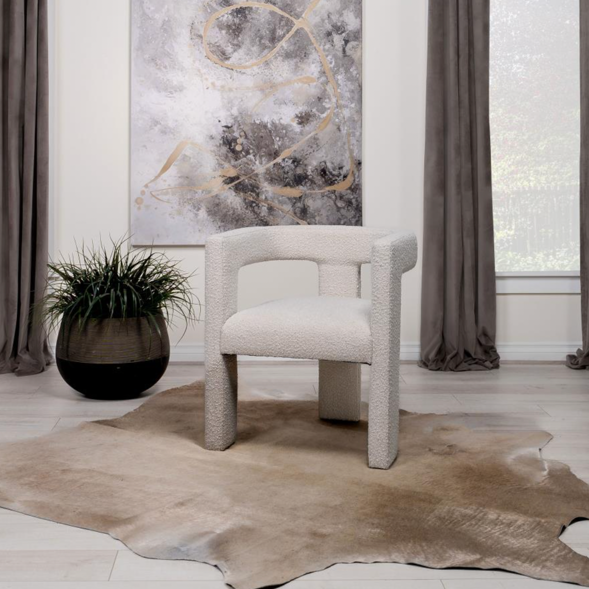 - Uninterrupted Bouclé Upholstery: The uninterrupted bouclé upholstery invites a serene tactile experience, transforming the chair into a modern sanctuary where every touch is a moment of pure luxury and comfort.