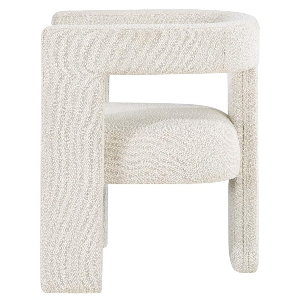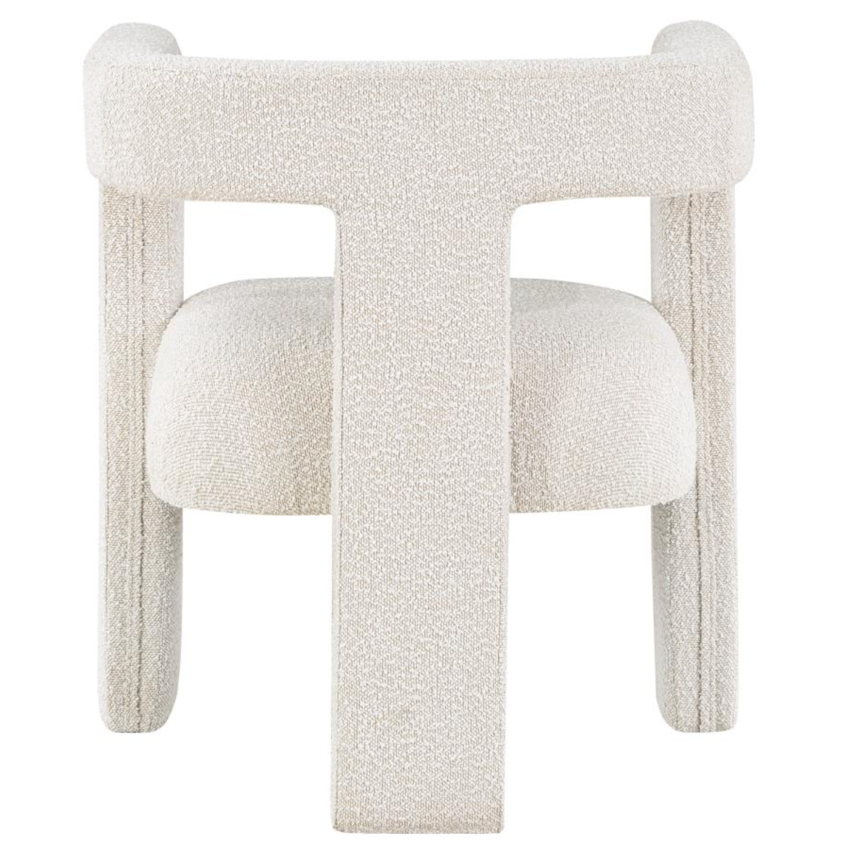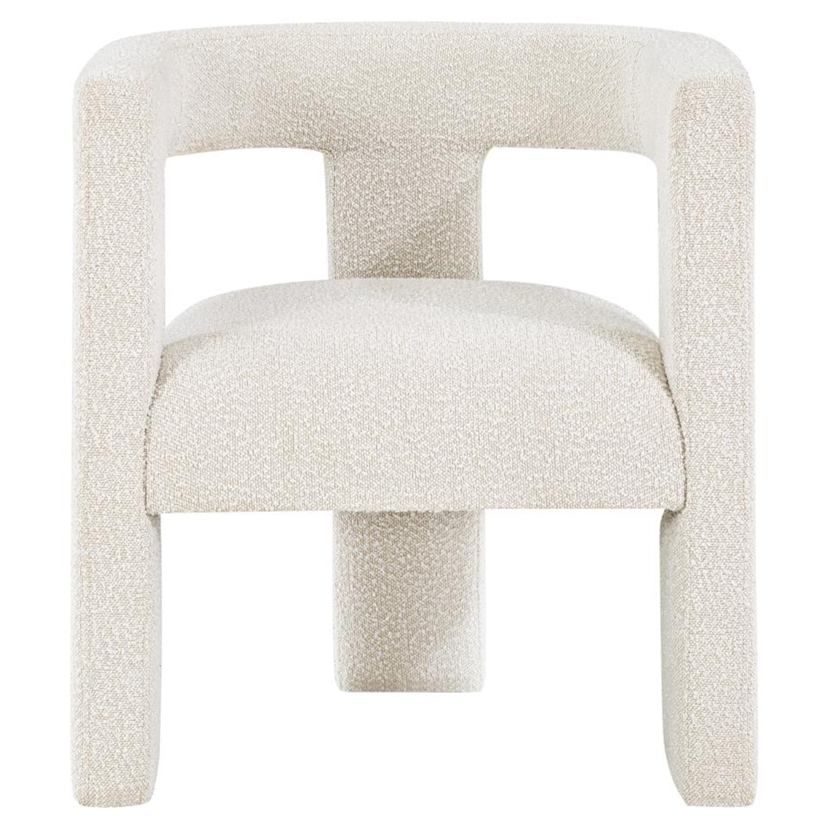 - Uninterrupted Bouclé Upholstery: The uninterrupted bouclé upholstery invites a serene tactile experience, transforming the chair into a modern sanctuary where every touch is a moment of pure luxury and comfort.