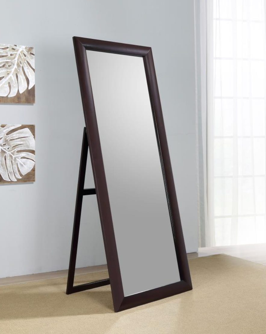 - Dark Cappuccino Finish: Finished in a rich and luxurious dark cappuccino hue, this floor mirror adds warmth and depth to your space. The deep, espresso-inspired tone complements a variety of decor styles, from traditional to contemporary, adding a touch of sophistication to any room.