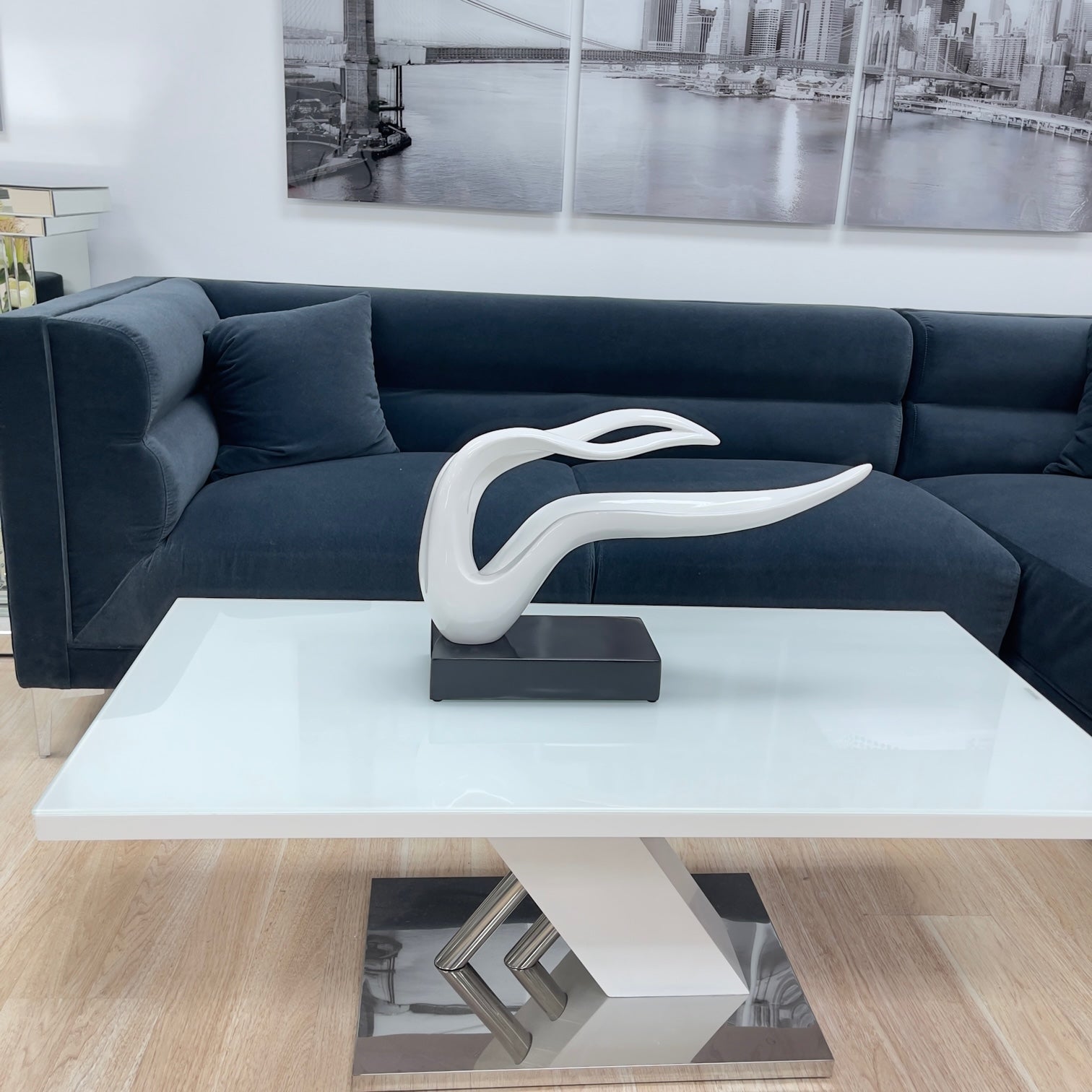 • Versatile Decor: This sculpture effortlessly complements various settings, from your living room to the office, bedroom, or entryway. Its distinctive form creates a sense of movement and fluidity that captures the imagination.