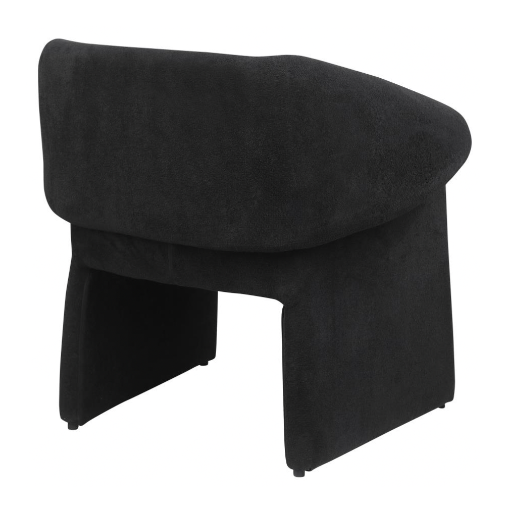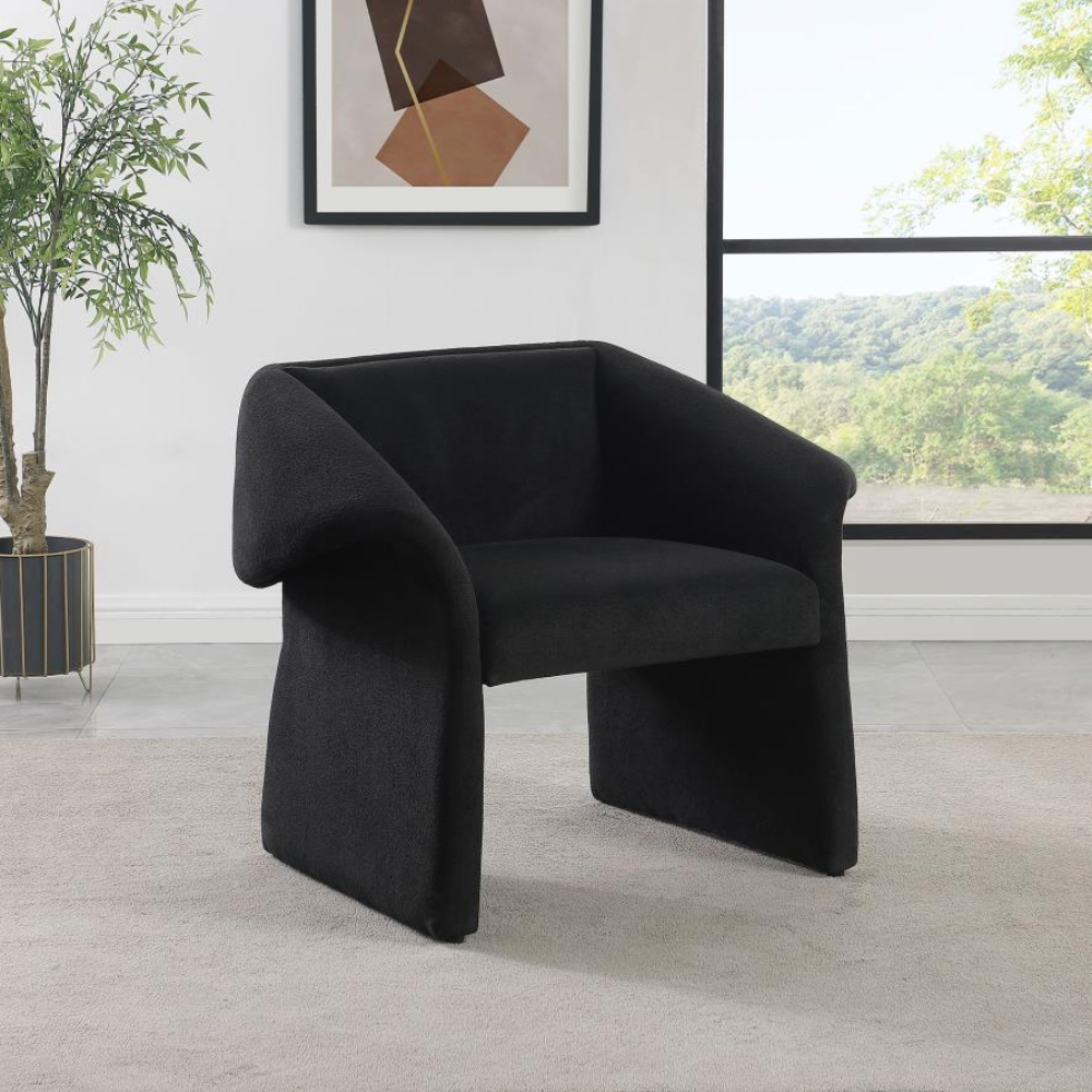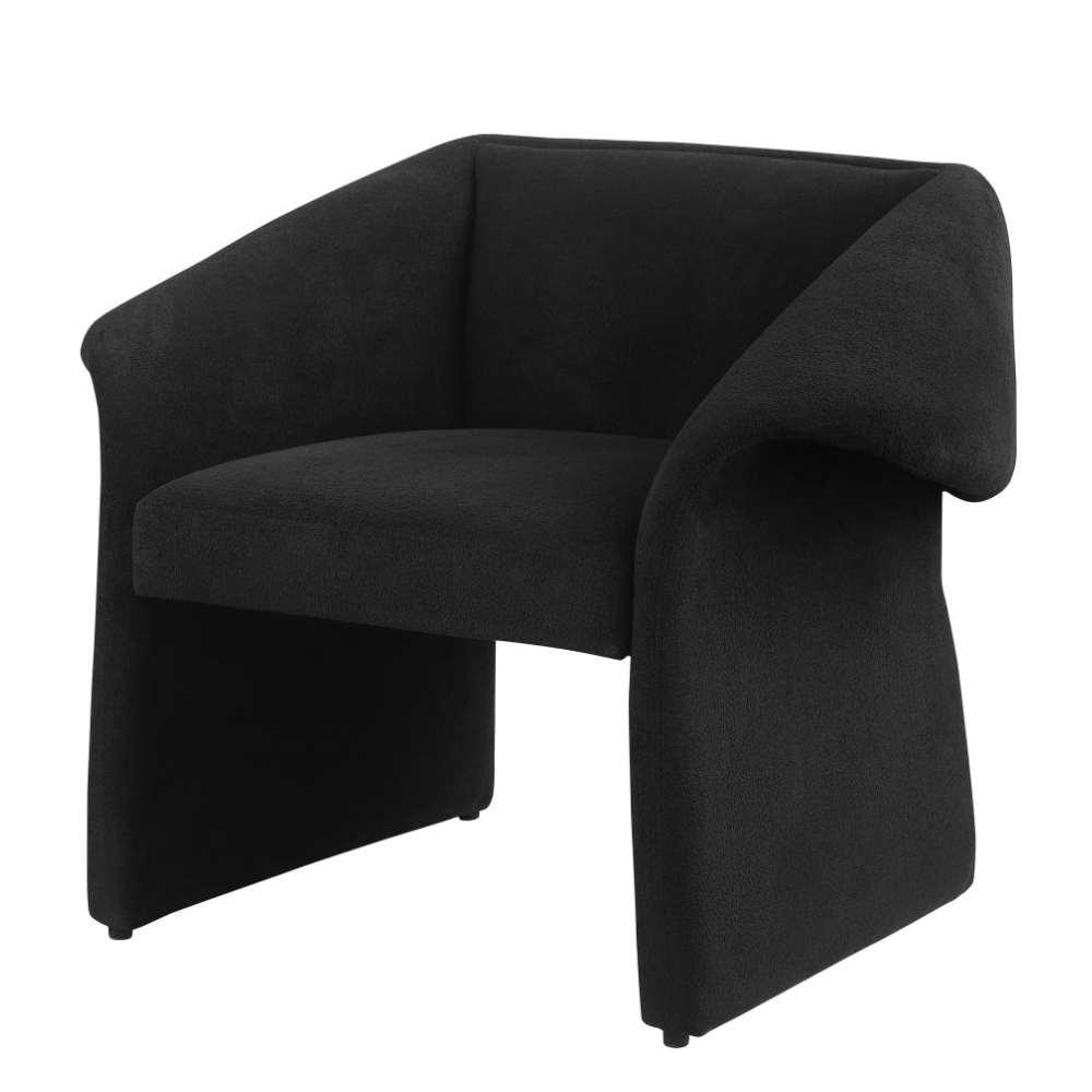 Elevate your living space with the artistic elegance of this modern accent armchair. Its standout silhouette showcases gracefully curled arms that blend classic refinement with contemporary design. Upholstered in soft, suede-like fabric, it offers a rich texture and neutral hue to complement any decor. The gently sloping armrests and foam-padded seat provide both comfort and style, making it a perfect addition to a cozy reading nook or seating group. Designed with practicality in mind, its sturdy legs include levelers for enhanced stability on any flooring surface.