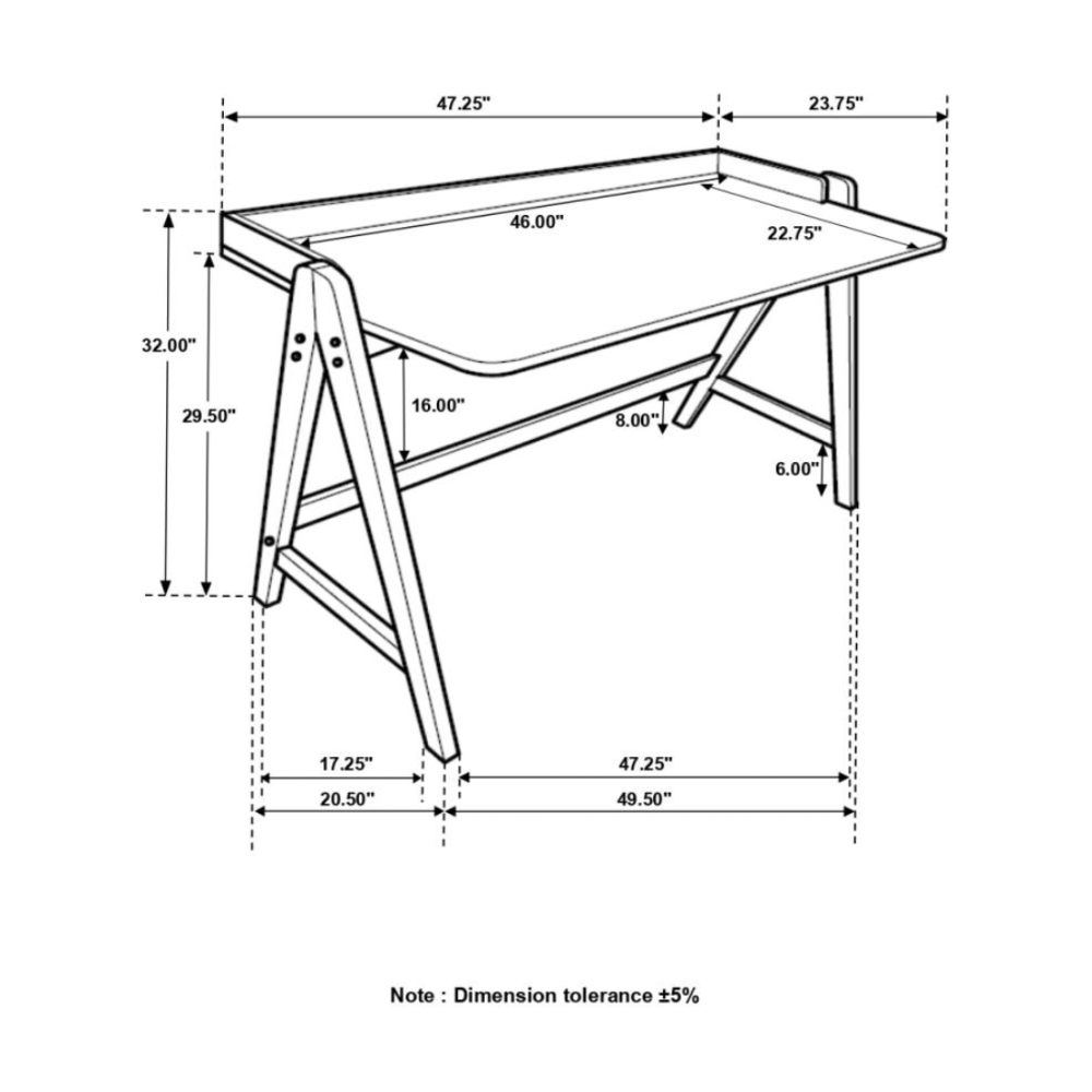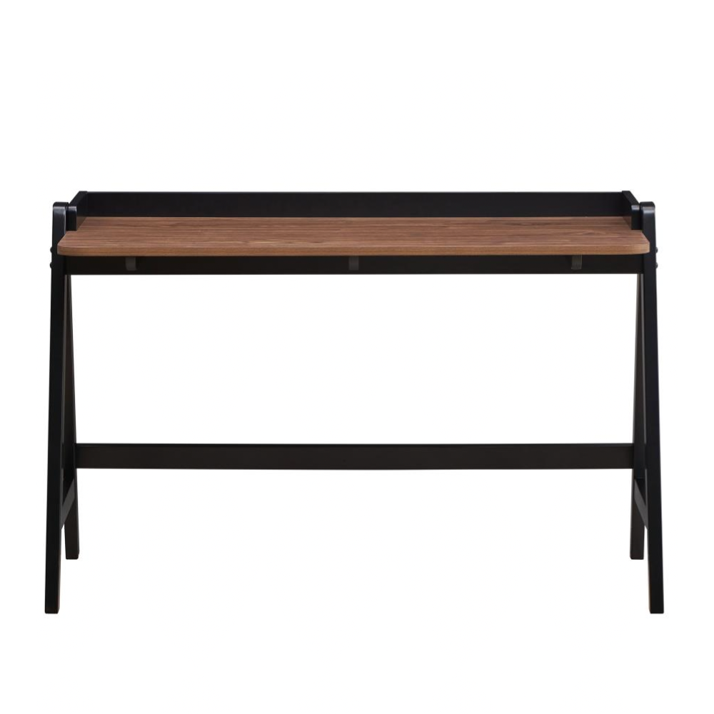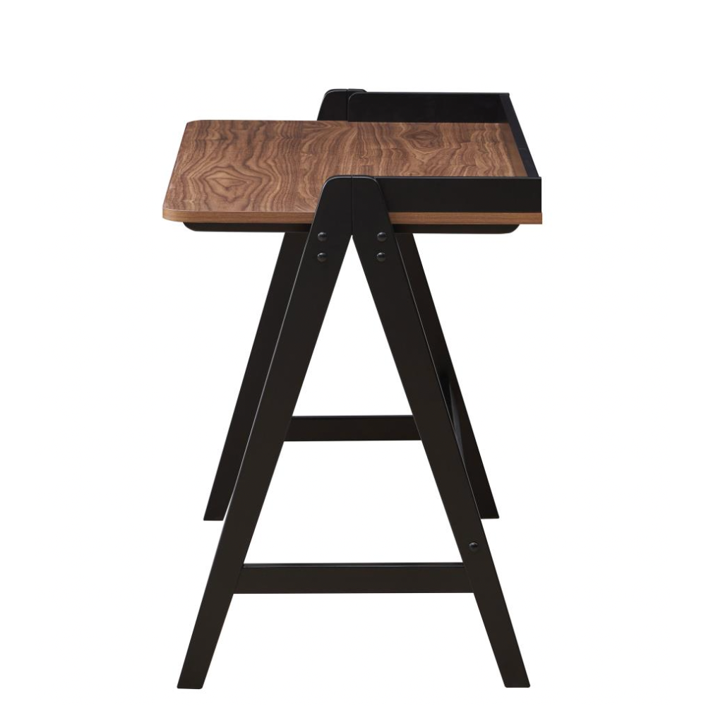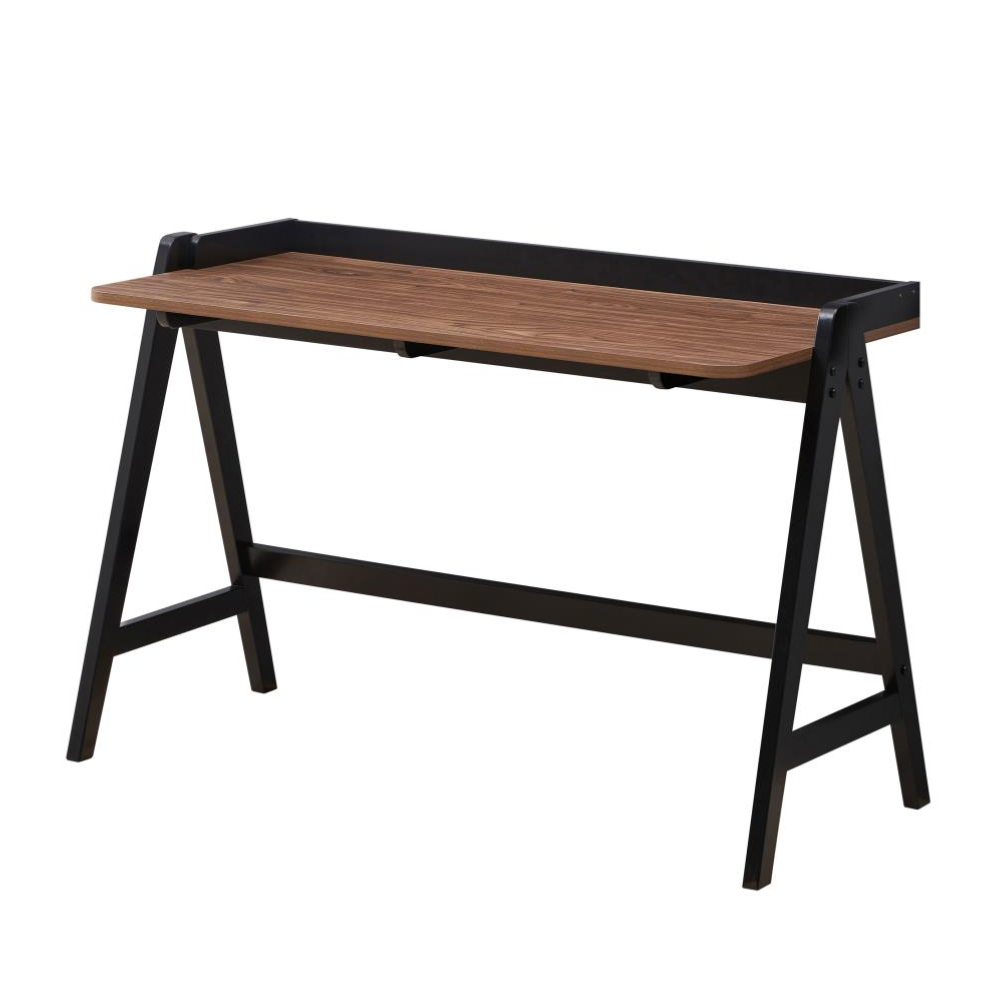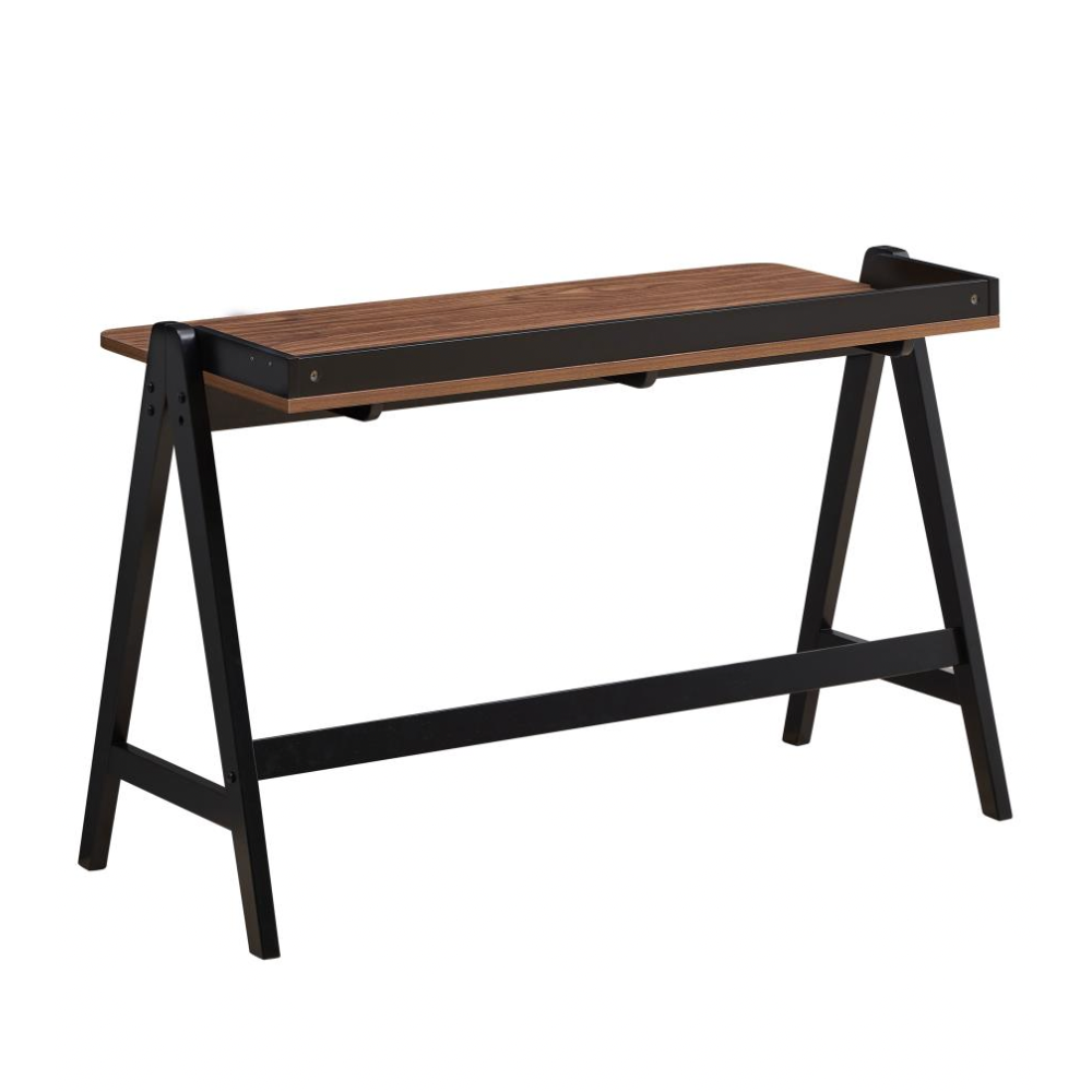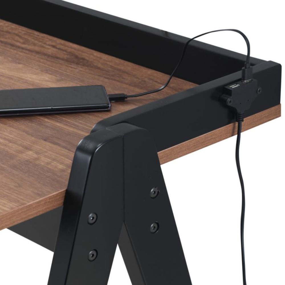 This industrial-style writing desk delivers modern function with a minimalist design, perfect for compact home offices or teen bedrooms. A rich walnut-finished top sits on a black A-frame trestle base, while raised ledges keep items in place. With dual USB ports built in, it’s both stylish and tech-friendly.