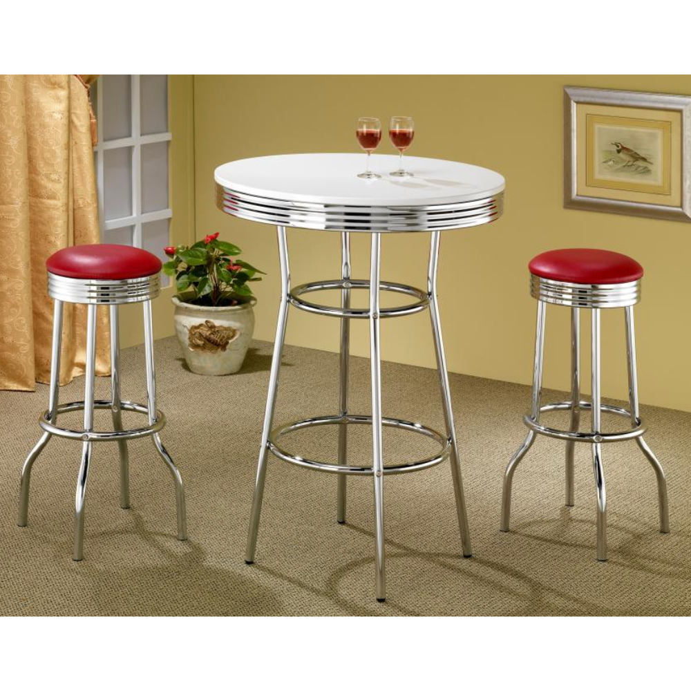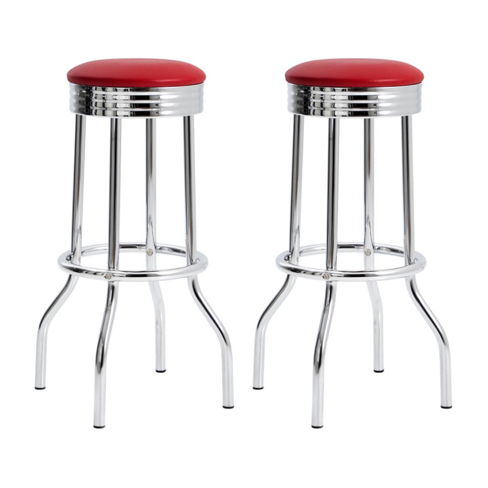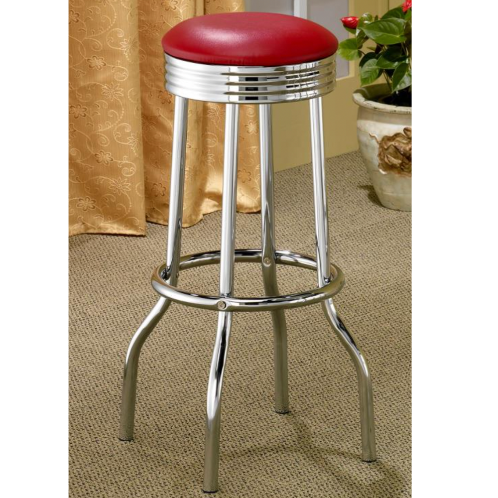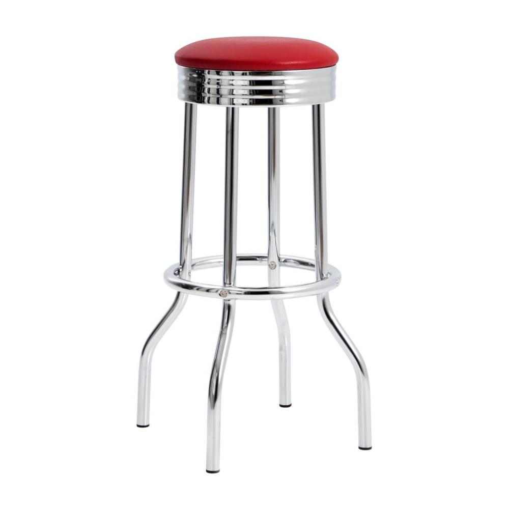 - Retro Inspiration: Classic 1950s diner-inspired barstool with a bright red seat cushion and high-shine chrome base.