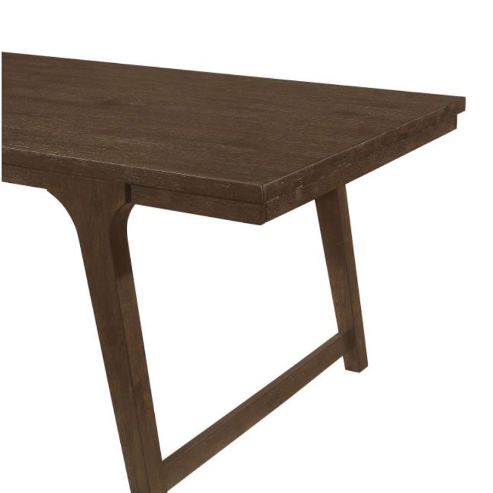 Gather your loved ones around our farmhouse and craftsman design dining table. Crafted from solid Asian hardwood, this table showcases a durable wire brushed brown oak finish, adding a touch of rustic elegance to your dining space. With its spacious design, it comfortably accommodates up to six people, providing ample room for family meals and gatherings.