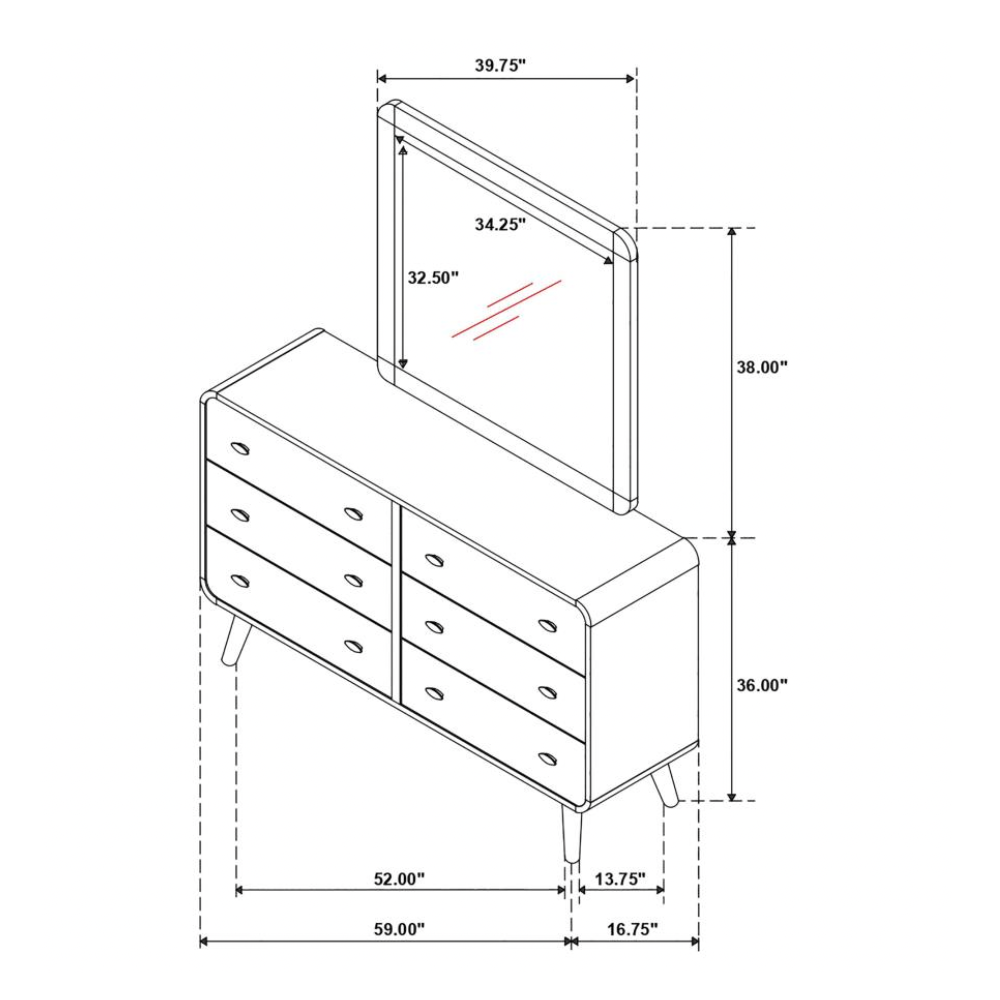 | Dresser Mirror | 39.75" | 1.00" | 38.00" | 28.44 lbs |