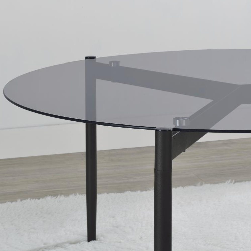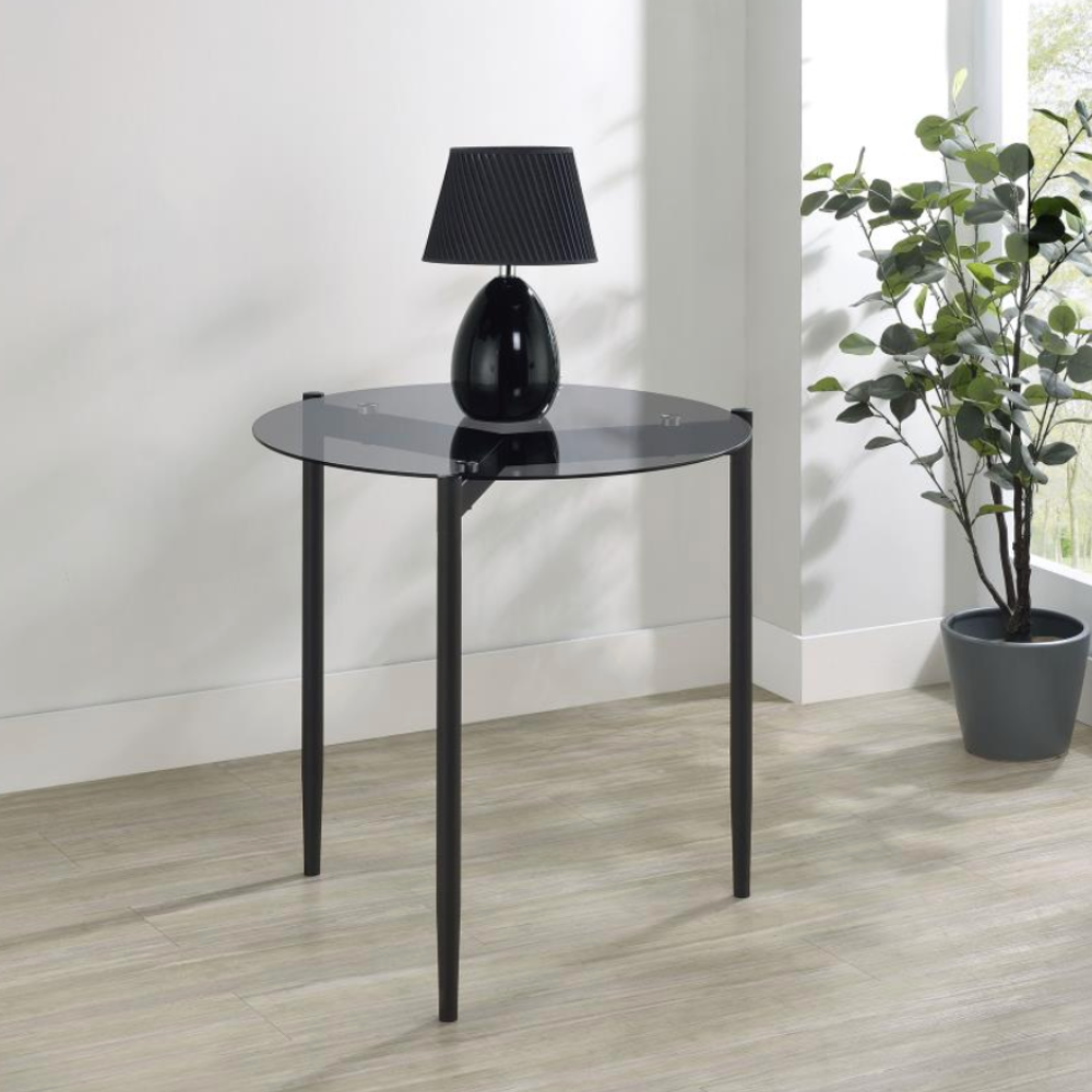 - Refined Top: Round smoked glass tabletop adds a touch of elegance.