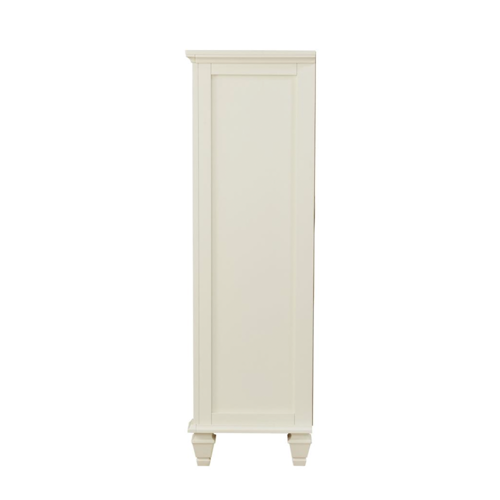 Add timeless elegance and practical storage to your bedroom with this five-drawer chest. The felt-lined top drawer protects delicate items, while brushed nickel hardware lends a modern touch of sophistication. Built from solid hardwood and engineered wood with a cream white finish, this chest is both durable and versatile, complementing traditional and transitional bedroom styles.
