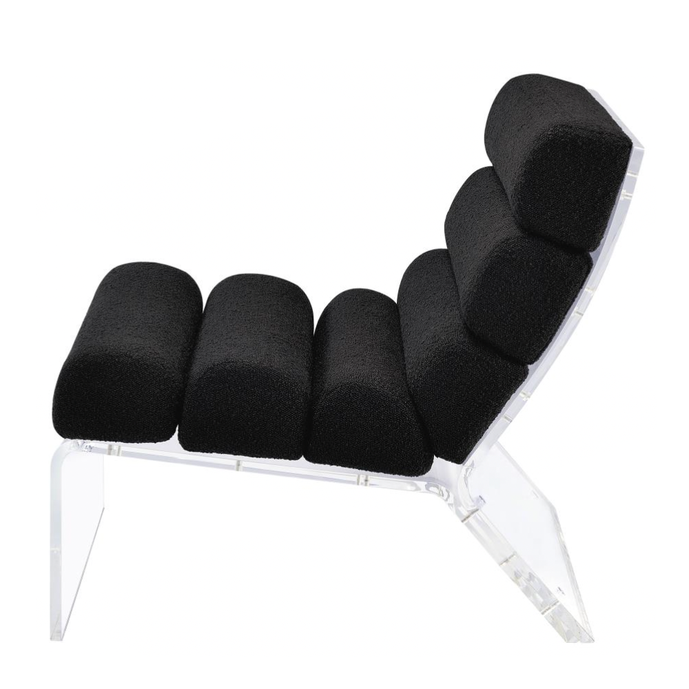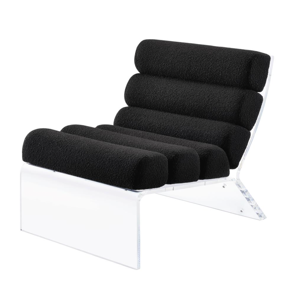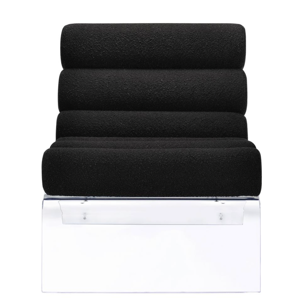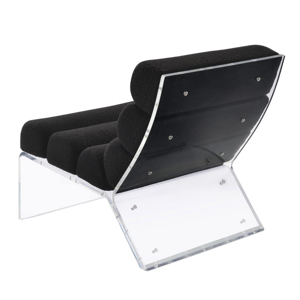 Indulge in the perfect blend of contemporary design and luxurious comfort with this stunning accent lounge chair. Highlighted by horizontal channel tufting, its plush bouclé fabric upholstery creates a textured and inviting feel. A thick, high-quality clear acrylic frame surrounds the chair, offering both durability and a modern floating effect. This sophisticated design effortlessly blends into any décor, becoming a striking centerpiece that elevates your living space. With its plush comfort and sleek transparency, this chair is a statement in modern elegance.