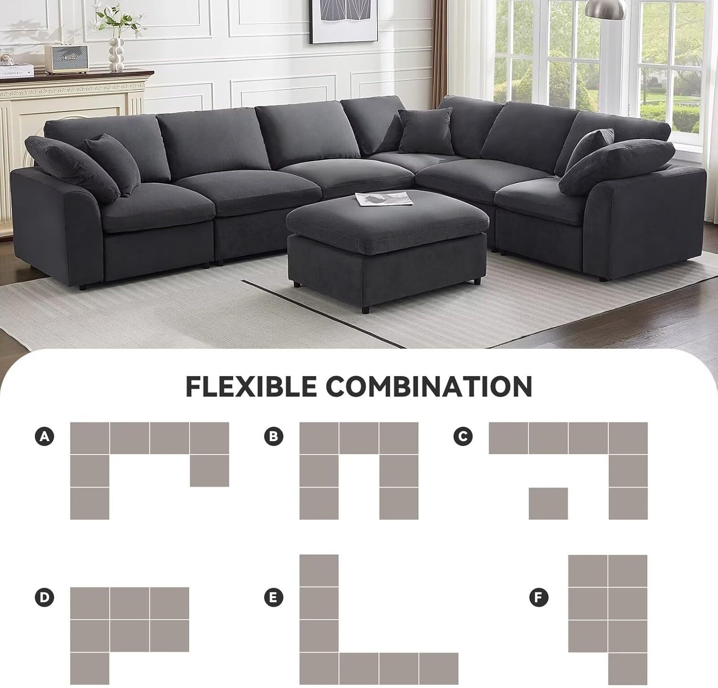 Transform your living space with this Modular Sectional Sofa, a perfect blend of style, comfort, and versatility. With its modular design, this 7-seat sofa allows you to create a layout that suits any occasion, offering a cozy retreat for family gatherings or a stylish centerpiece for entertaining guests.