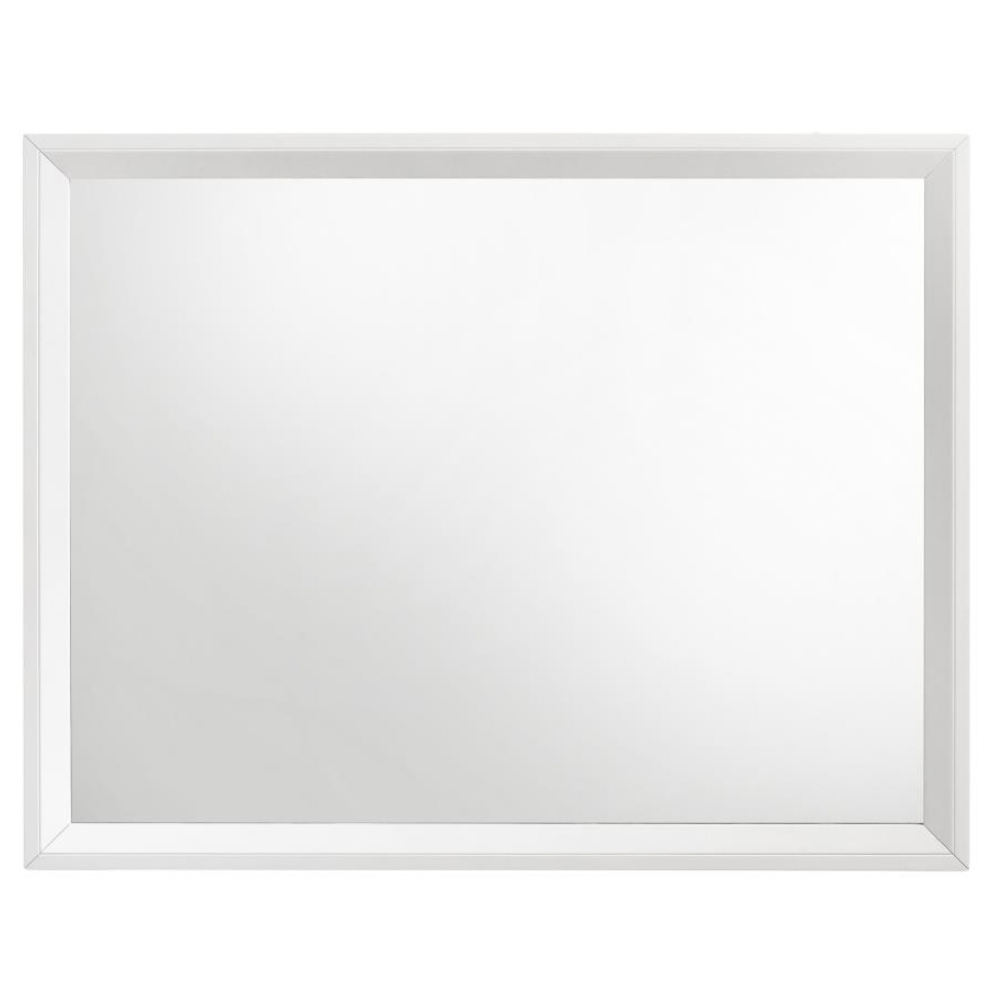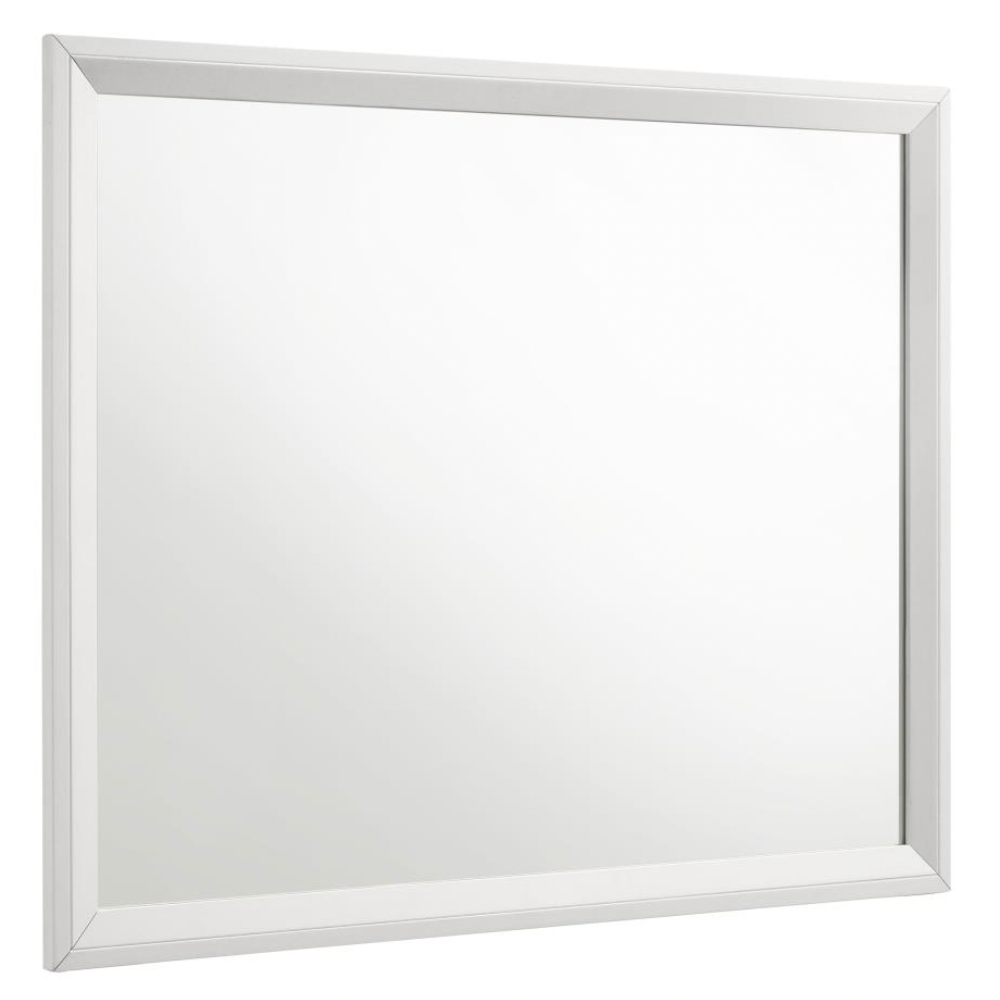 Elevate your bedroom with the chic and modern design of this dresser mirror. Featuring a sleek white finish and smooth, framed trim with open corners, this mirror adds a contemporary touch to any dresser. It mounts to the back of your dresser, seamlessly updating your furniture and offering a clean, flat glass surface for a sophisticated look.