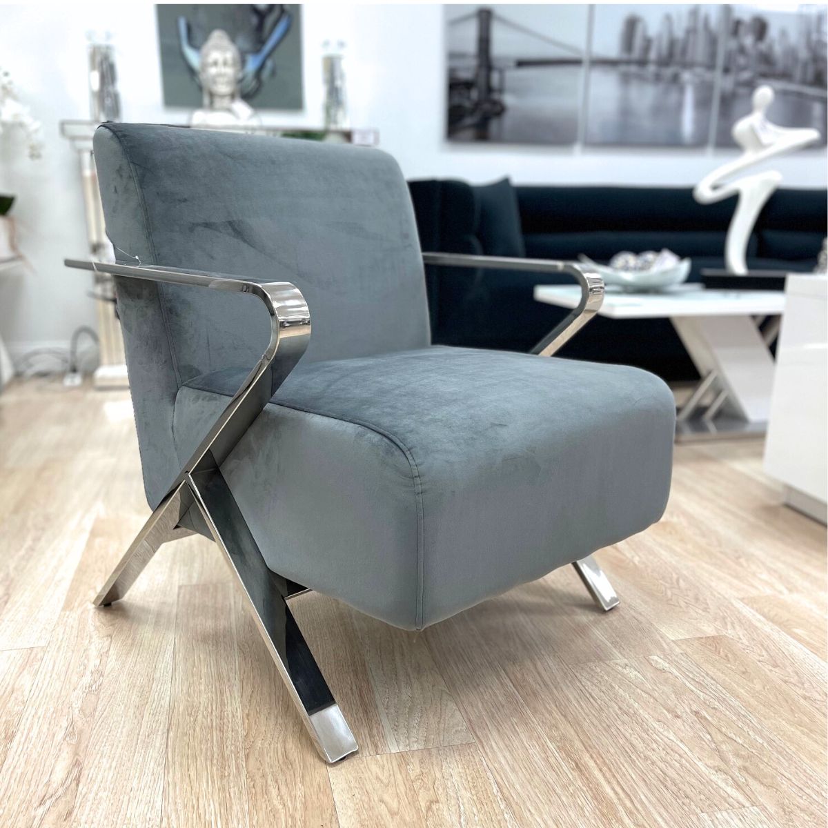 - Sorrento Grey Velvet Accent Chair: Experience the epitome of modern elegance and comfort.