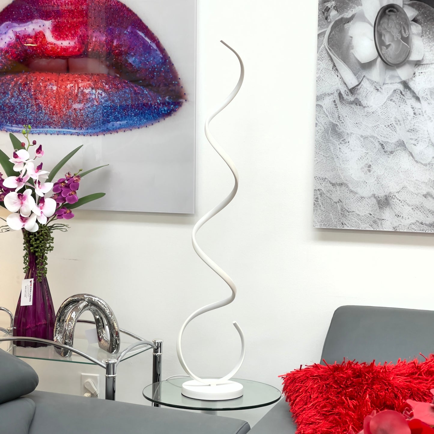 - Sleek Aluminum Body: Crafted from high-quality aluminum, the SWIRL White LED Floor Lamp boasts a durable and stylish construction, adding a touch of sophistication to any space.