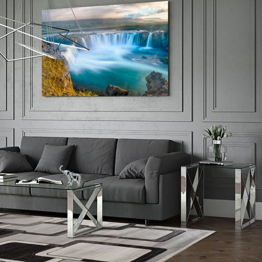 Introducing the Moon Glass Top End Table, a fusion of modern elegance and functionality that will elevate your living space. This end table boasts an array of features that seamlessly combine style and practicality, making it a sophisticated addition to your decor