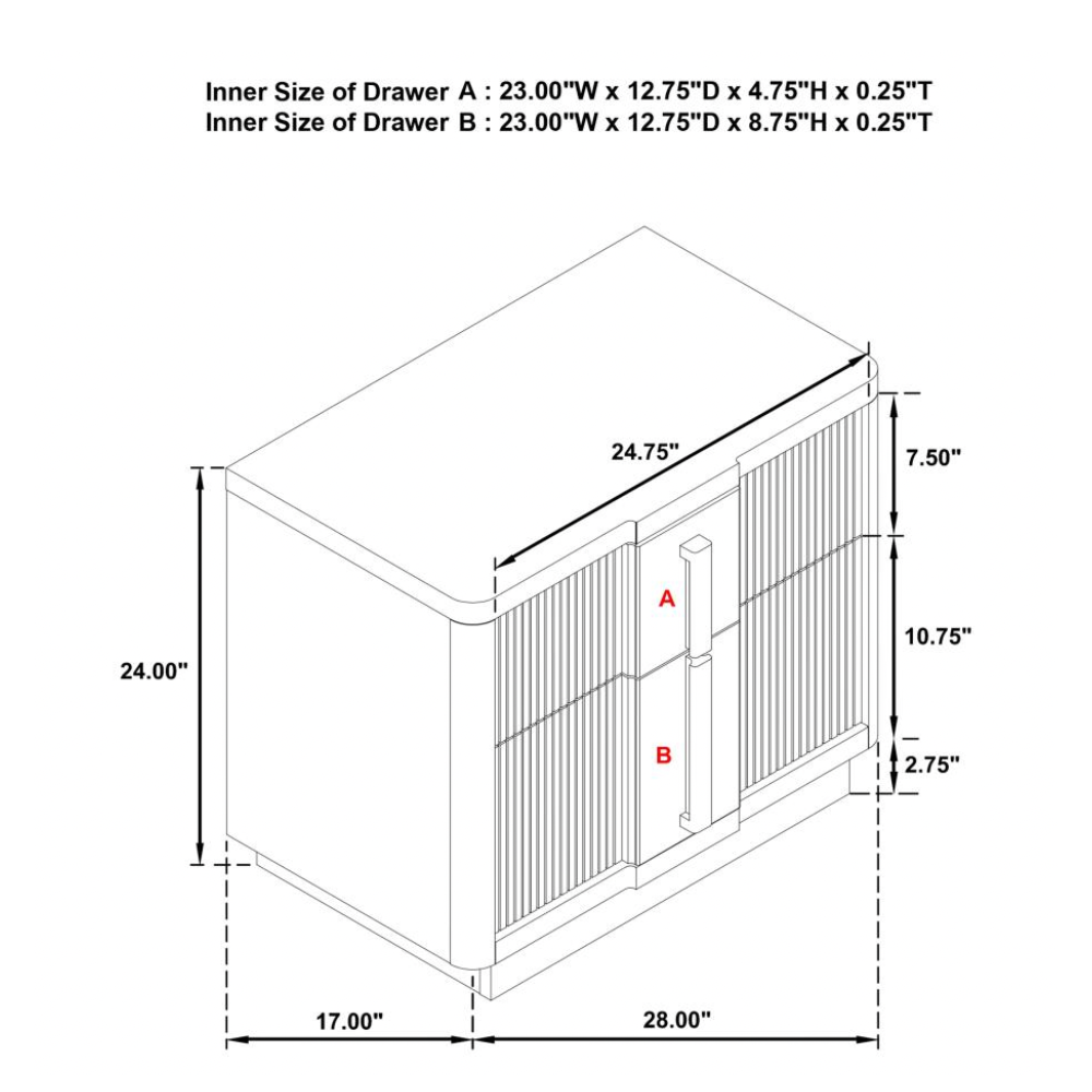 - Stylish Hardware: Matching vertical bar pulls echo the fluted drawer fronts for cohesive appeal