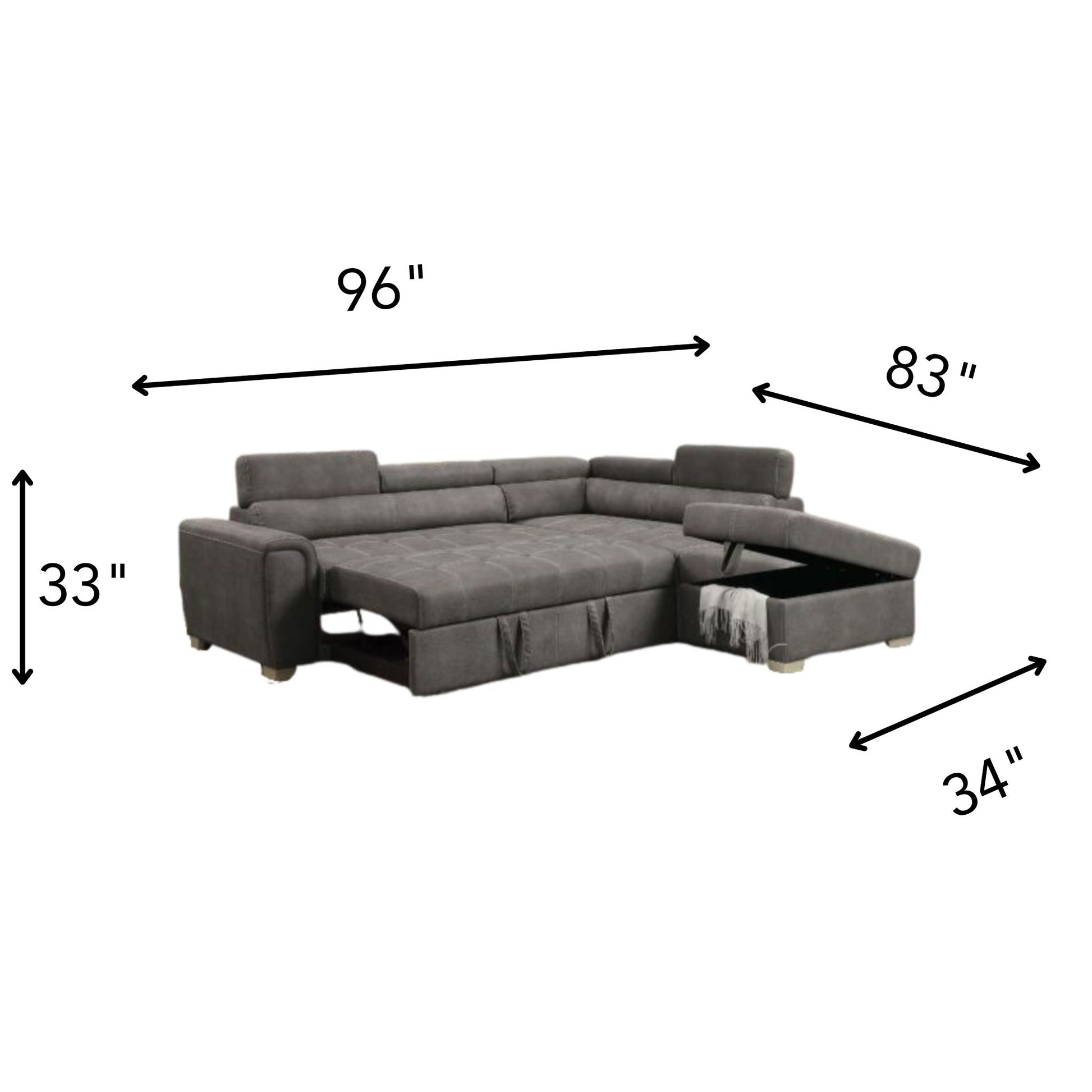 - Size: 96" x 61~83" x 29~33"H