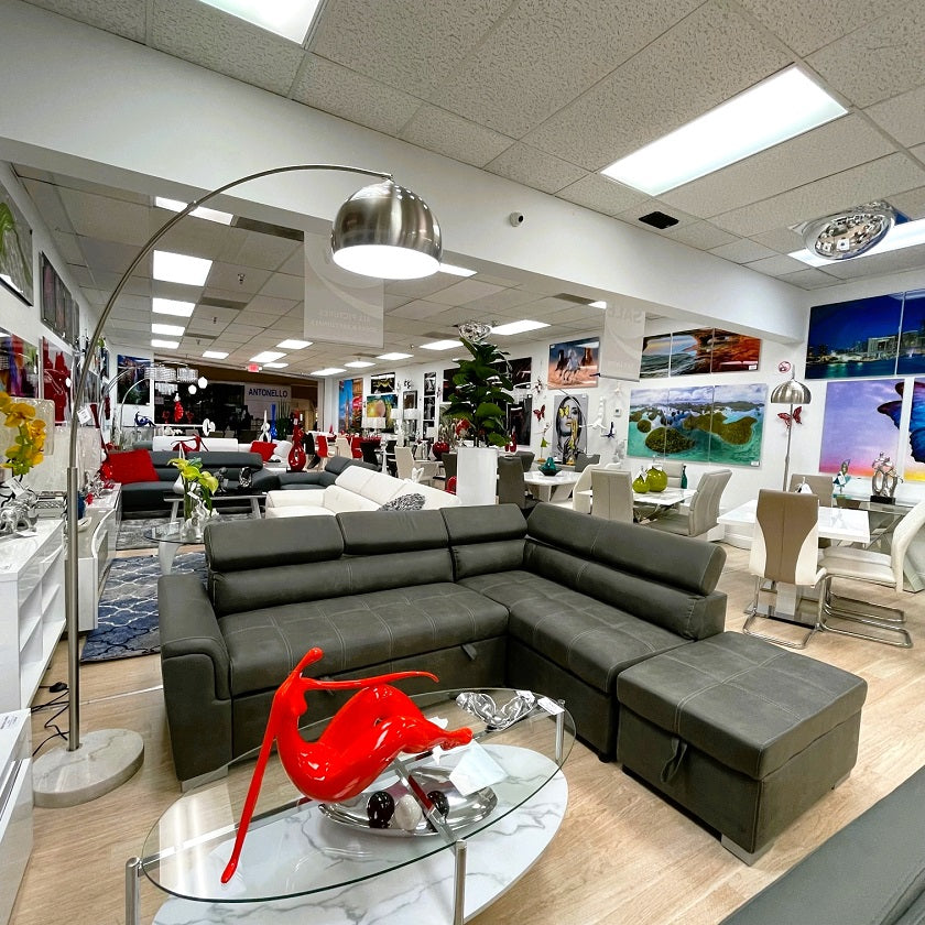 Introducing the THELMA Sleeper Sofa Sectional, the perfect blend of style and functionality for your living space. Crafted with plush shaved microfiber upholstery, this sectional is as comfortable as it is chic. The foam seats offer a cozy seating experience that's perfect for lounging or entertaining guests.