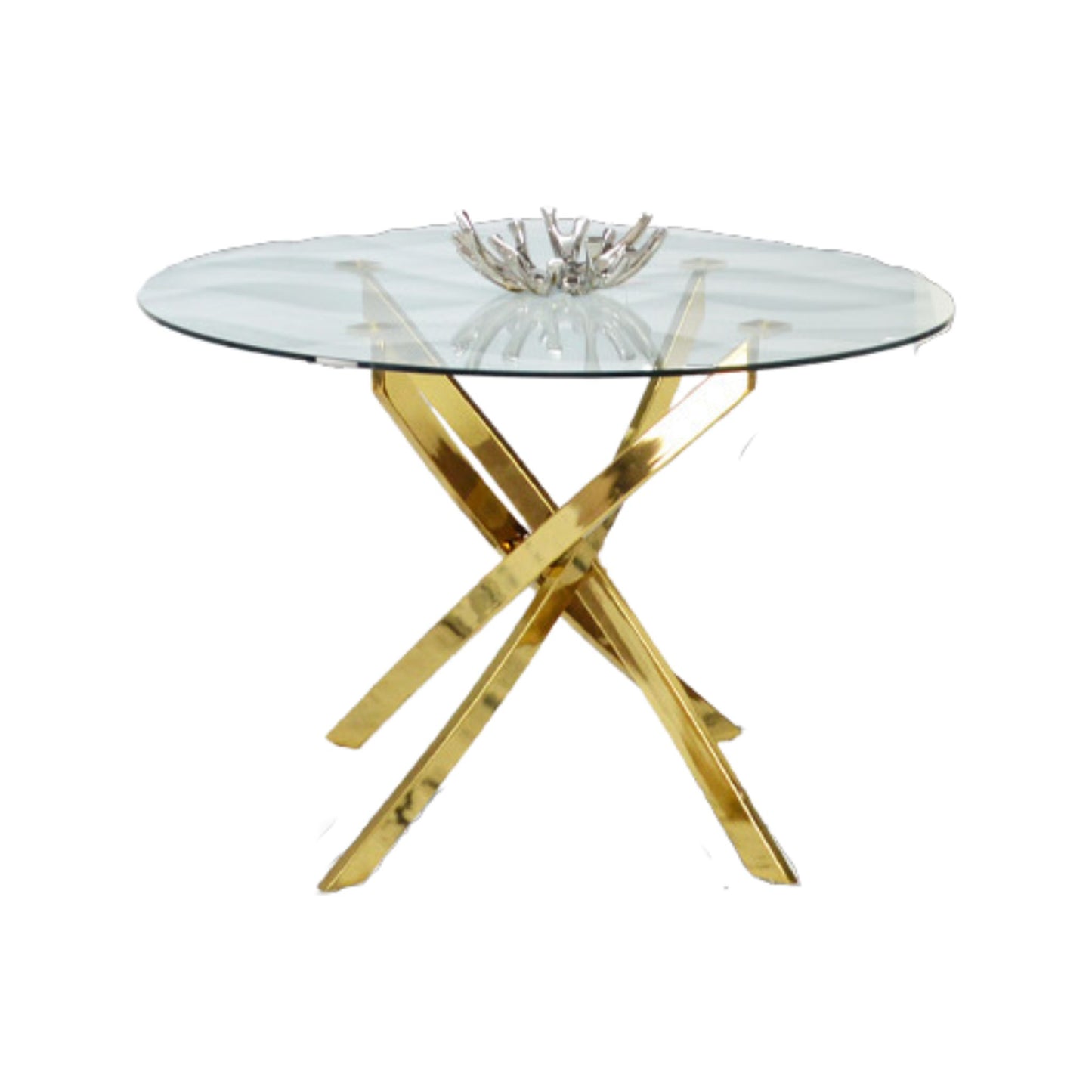 - Shiny Gold Stainless Steel Chairs: The dining set boasts chairs with shiny gold stainless steel frames, adding a touch of opulence to your dining space.