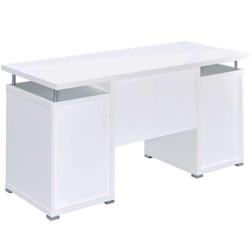 - Modern Design: Contemporary home office desk with an elegant white finish and chic silver metal detailing.