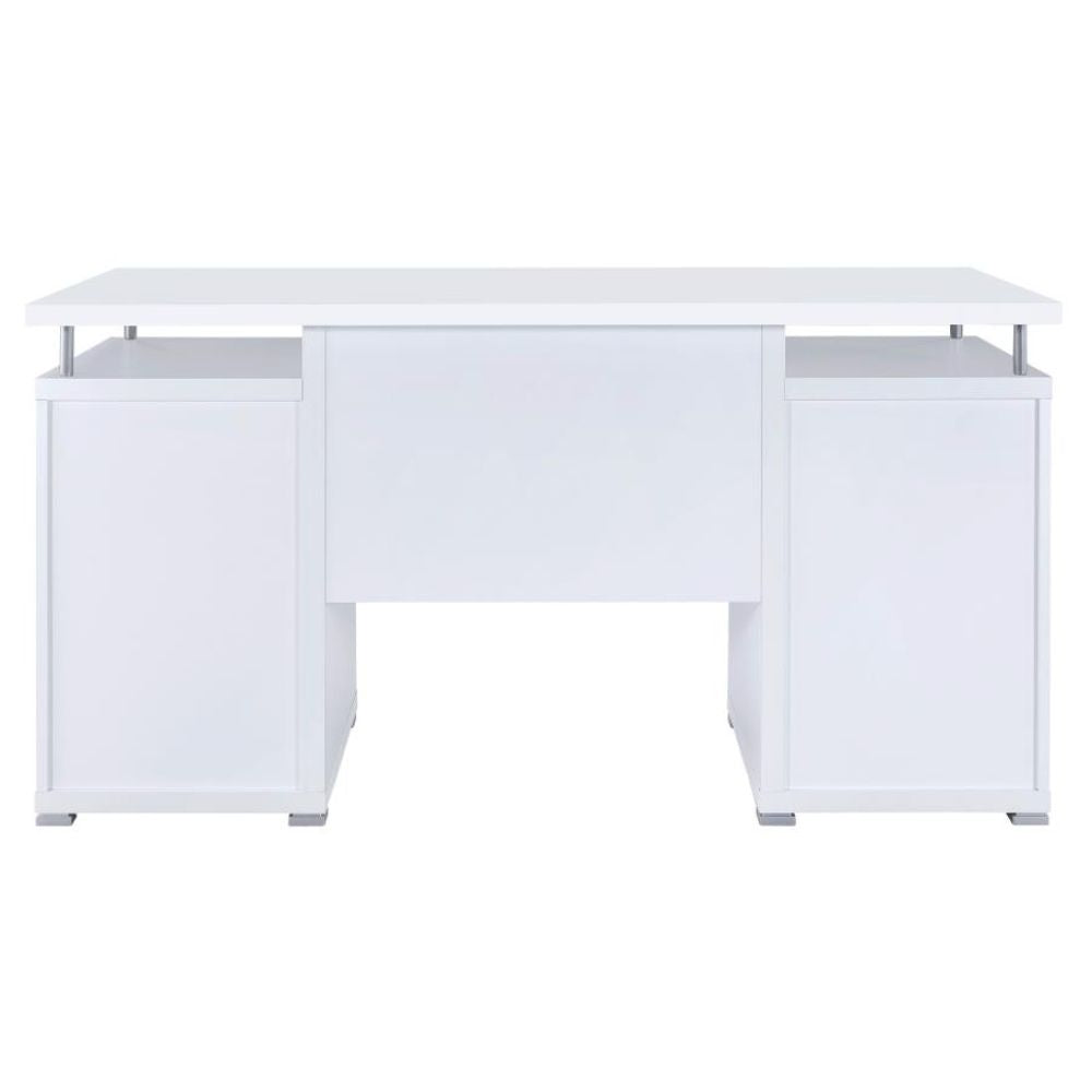 • Modern Design: Contemporary home office desk with an elegant white finish and chic silver metal detailing.