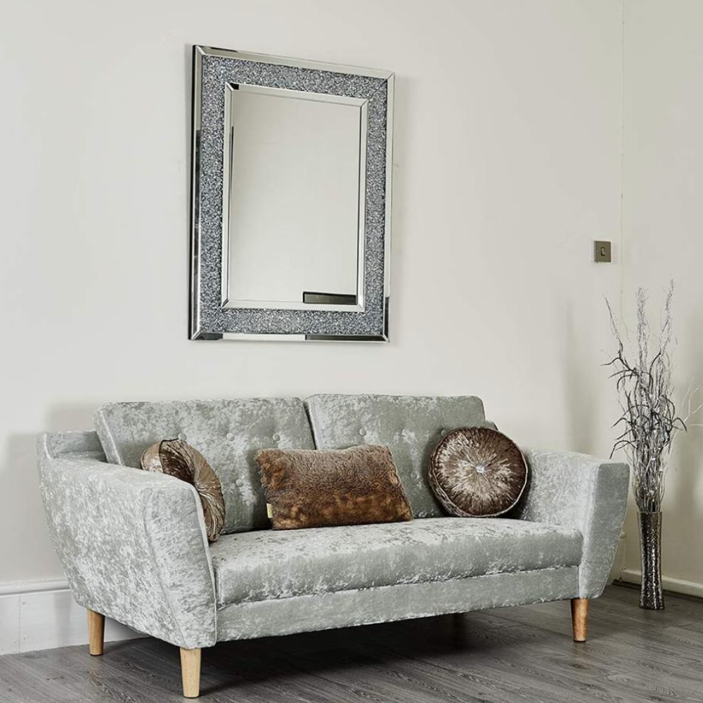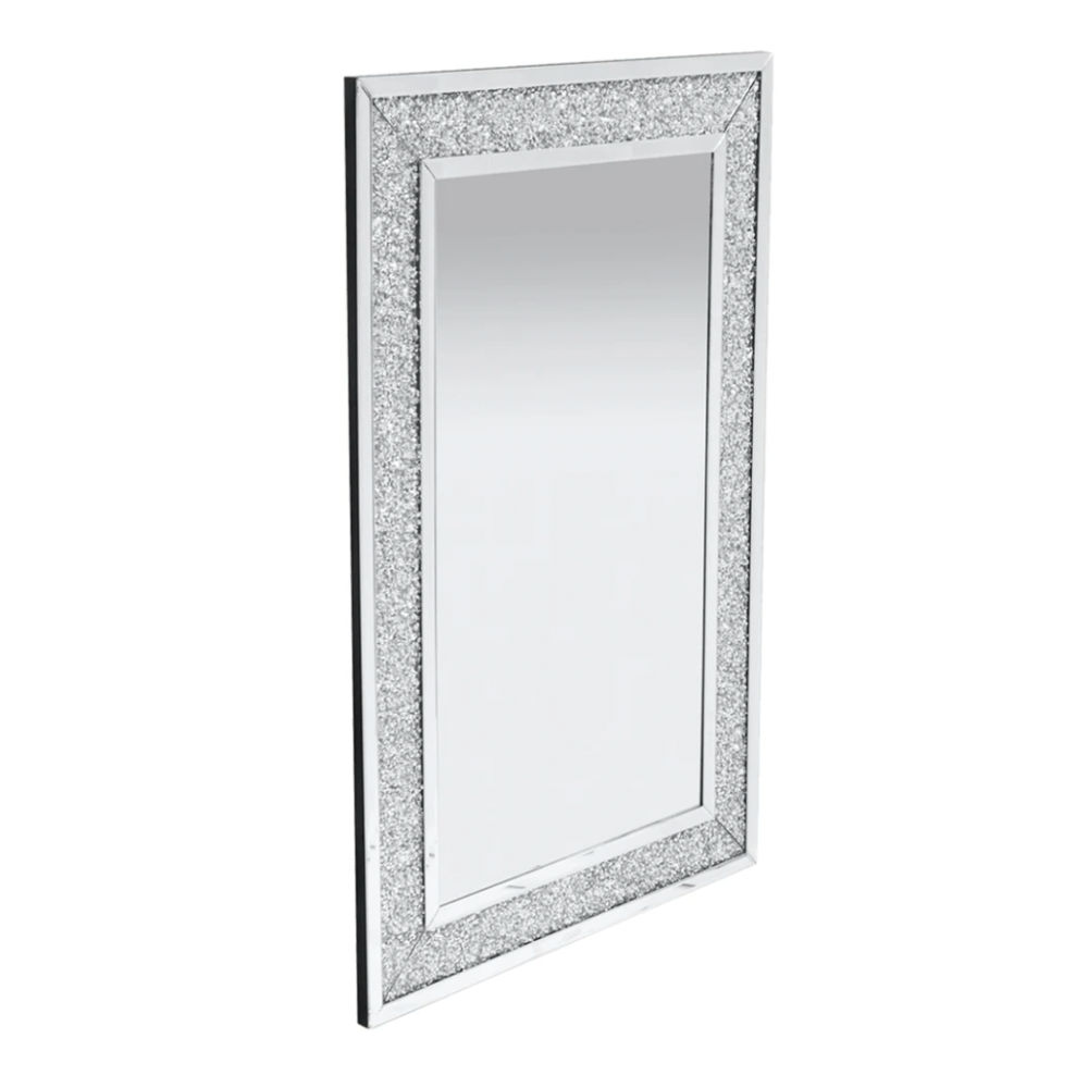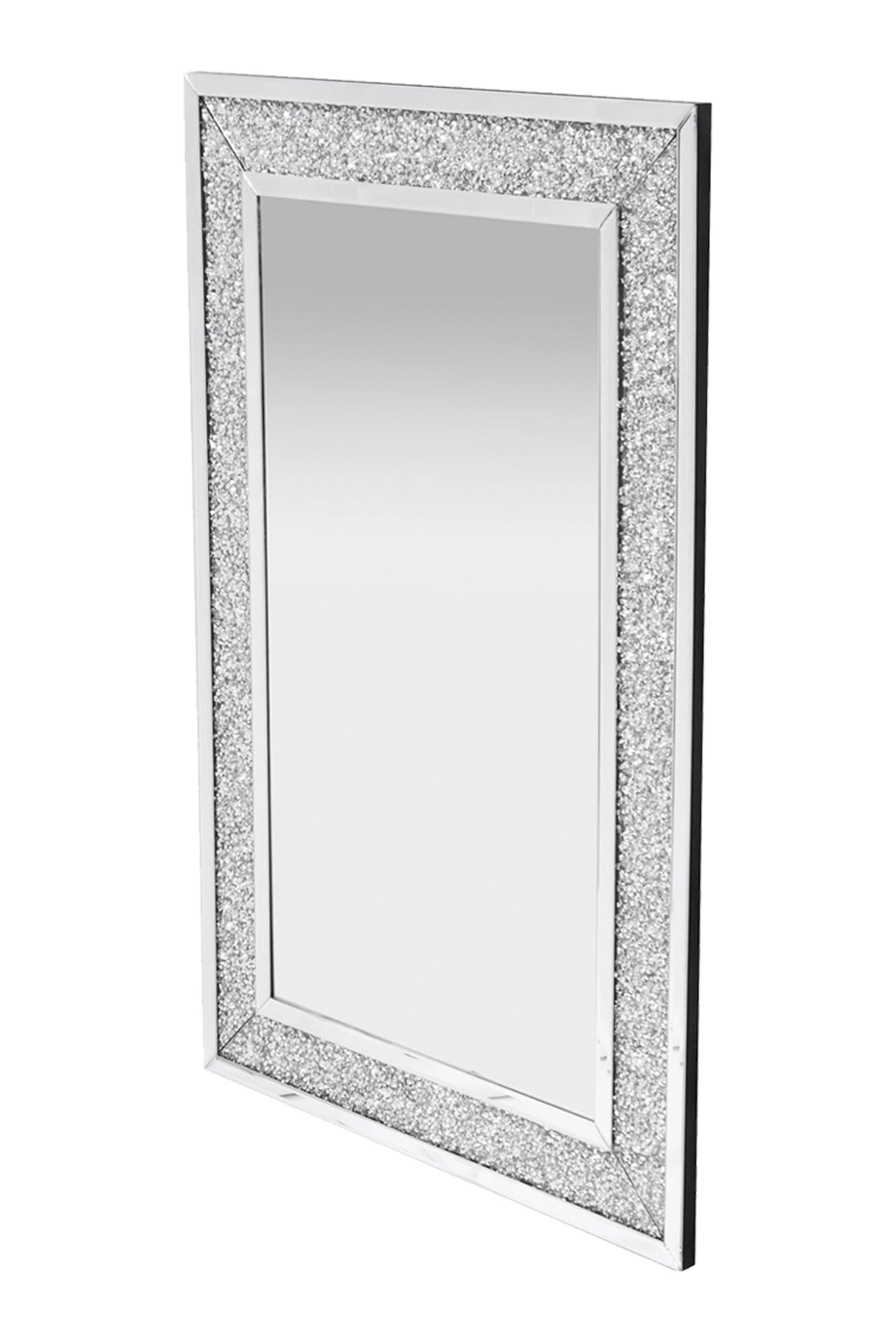 - Elegant Design: Full-size mirror with a silver-painted metal frame and embellished stones.