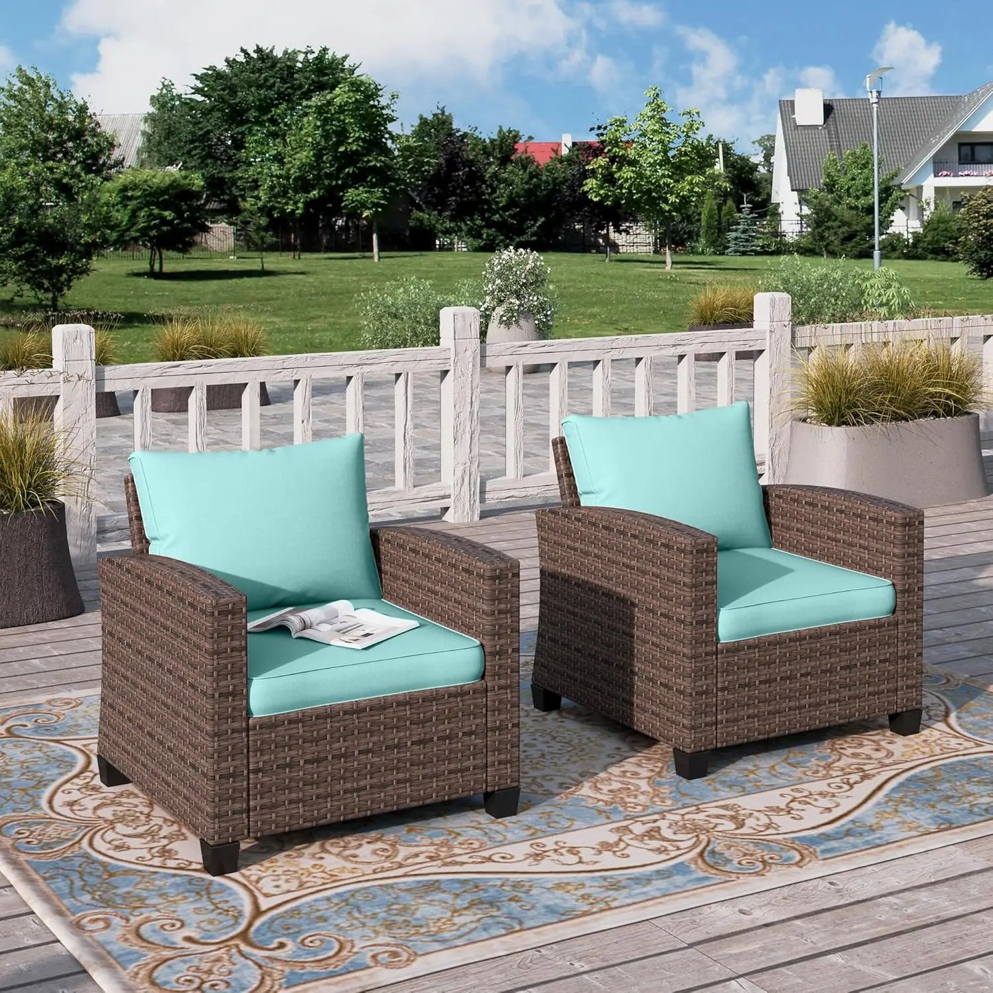 TRUVA Outdoor Wicker Rattan Patio Chairs Set of 2 Blue