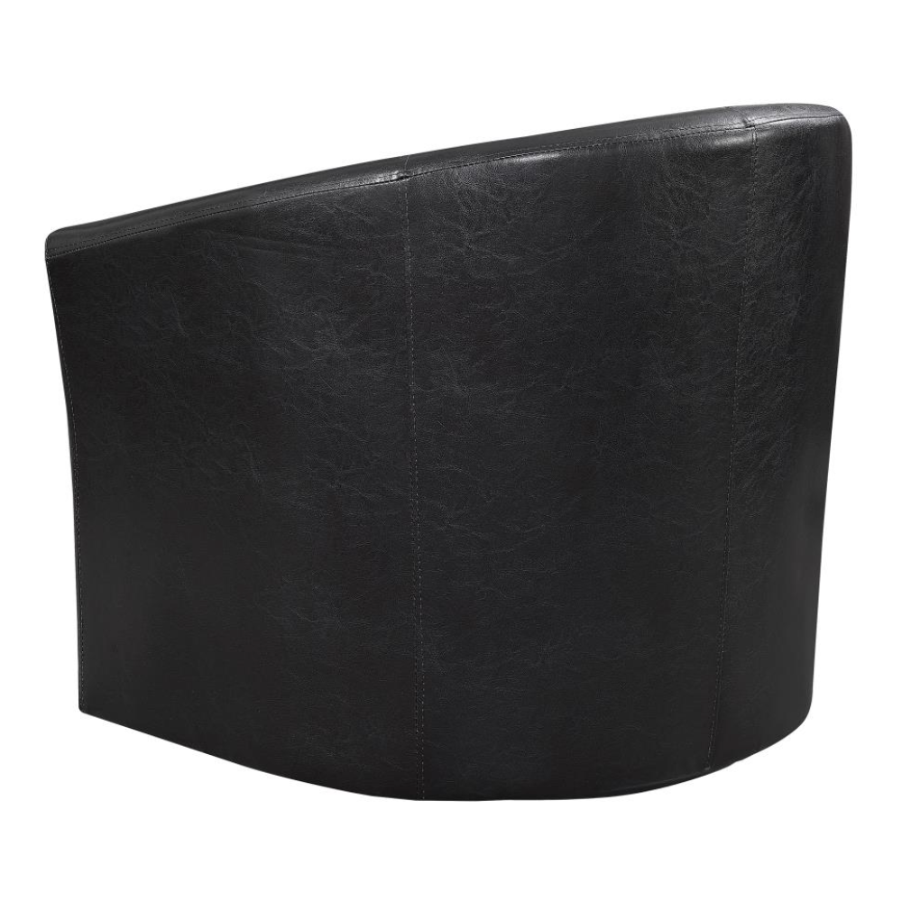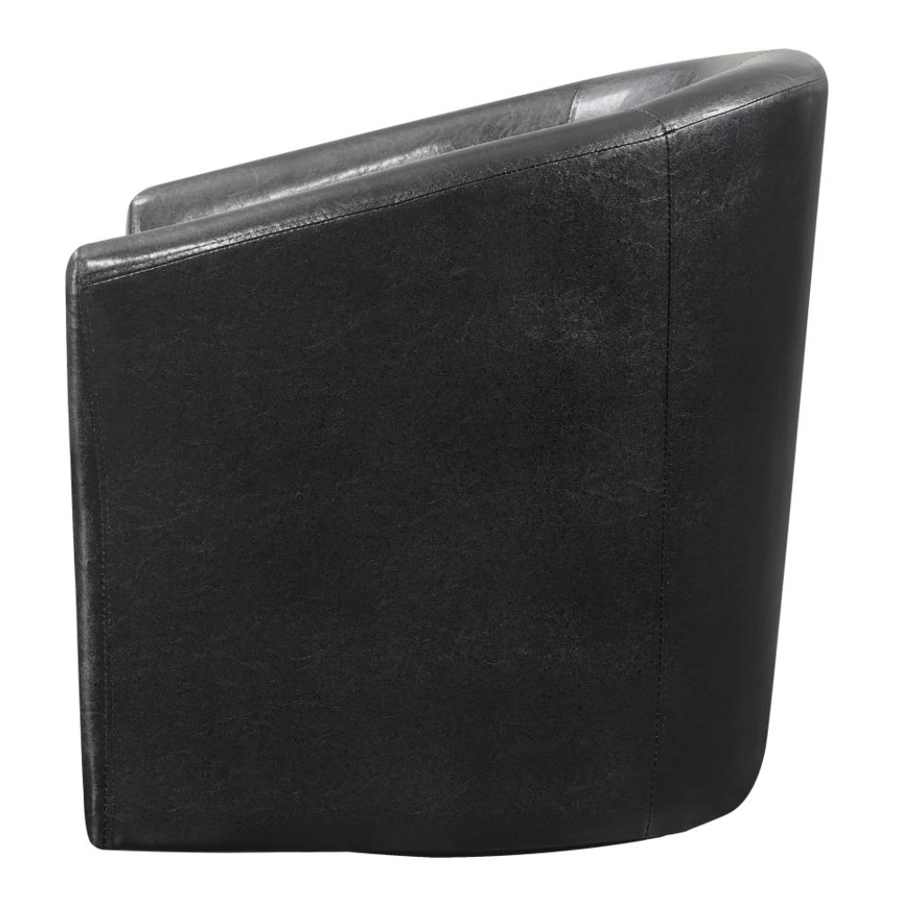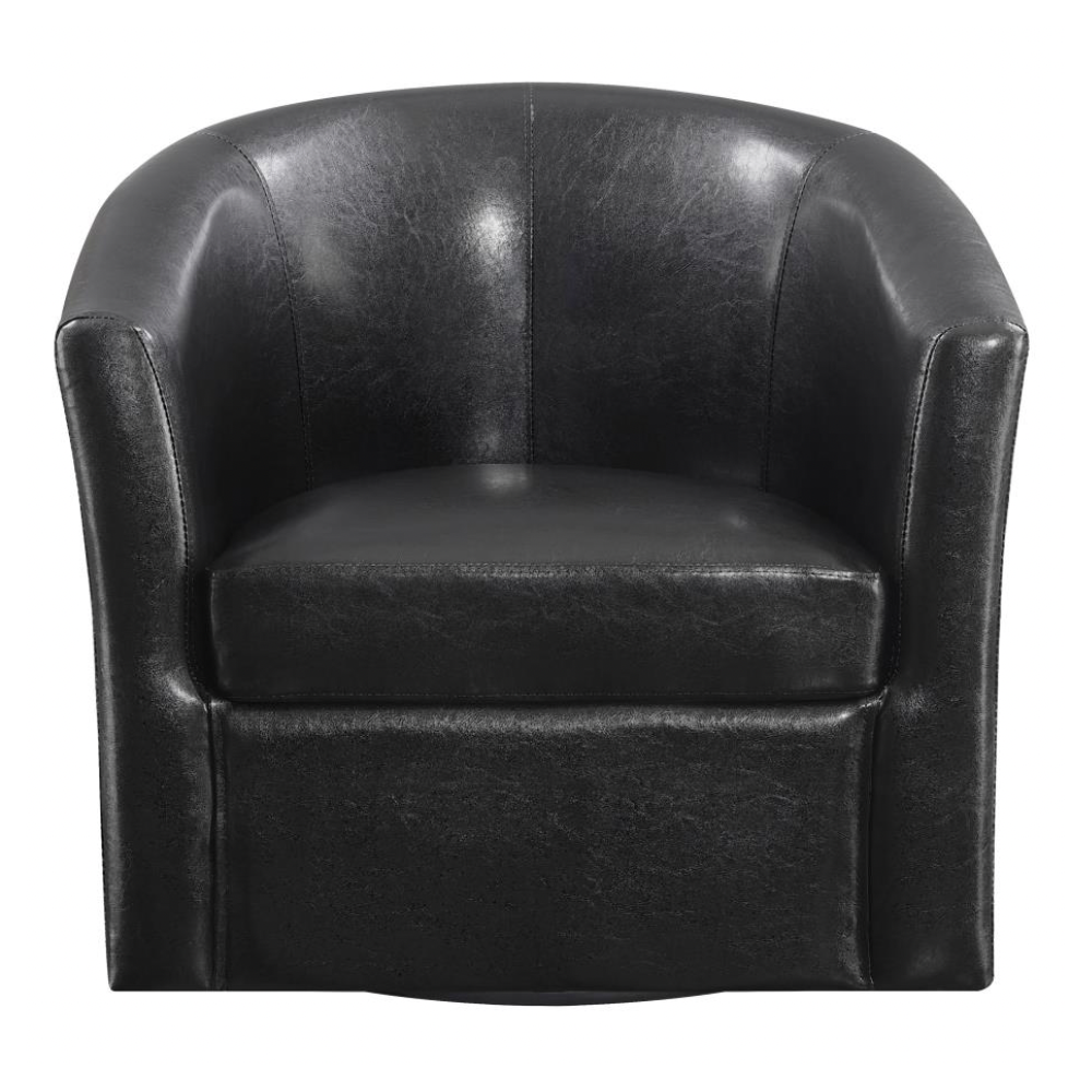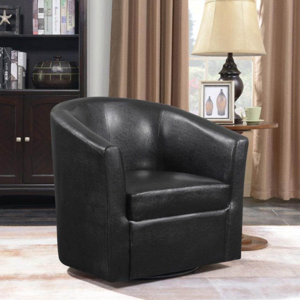 Enhance your seating area with this stylish swivel chair, featuring a classic barrel-back design that combines retro charm with modern comfort. Upholstered in dark brown leatherette, this chair offers both a chic look and easy maintenance. Whether you're looking to complement a bold print or maintain a classic monotone scheme, this versatile piece is perfect for any entertaining space.