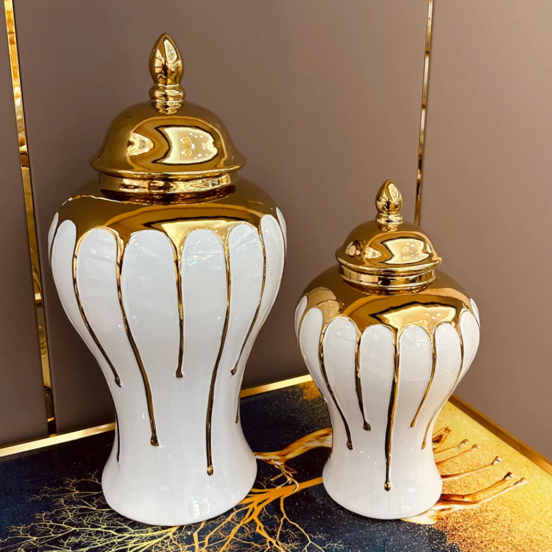 Elevate your home decor with this Decorative Ginger Jar Urn, featuring a striking "dripping" design that adds a modern and artistic flair. Its tall build and matching lid offer both elegance and functionality, making it a versatile addition to any room. Perfect as a standalone statement piece or paired with other decor, this urn effortlessly transforms your living space with its sophisticated charm.