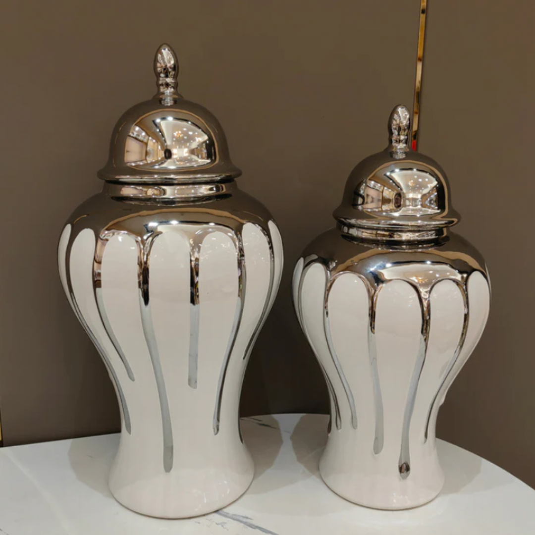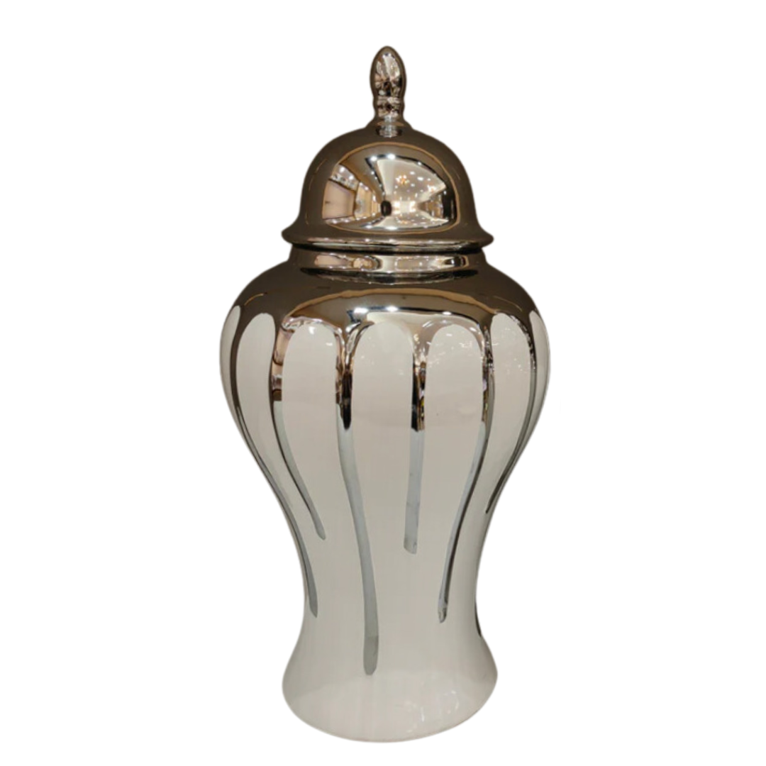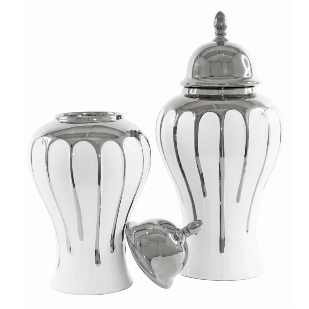 ULRICH 15" Decorative Ginger Jar Urn Silver