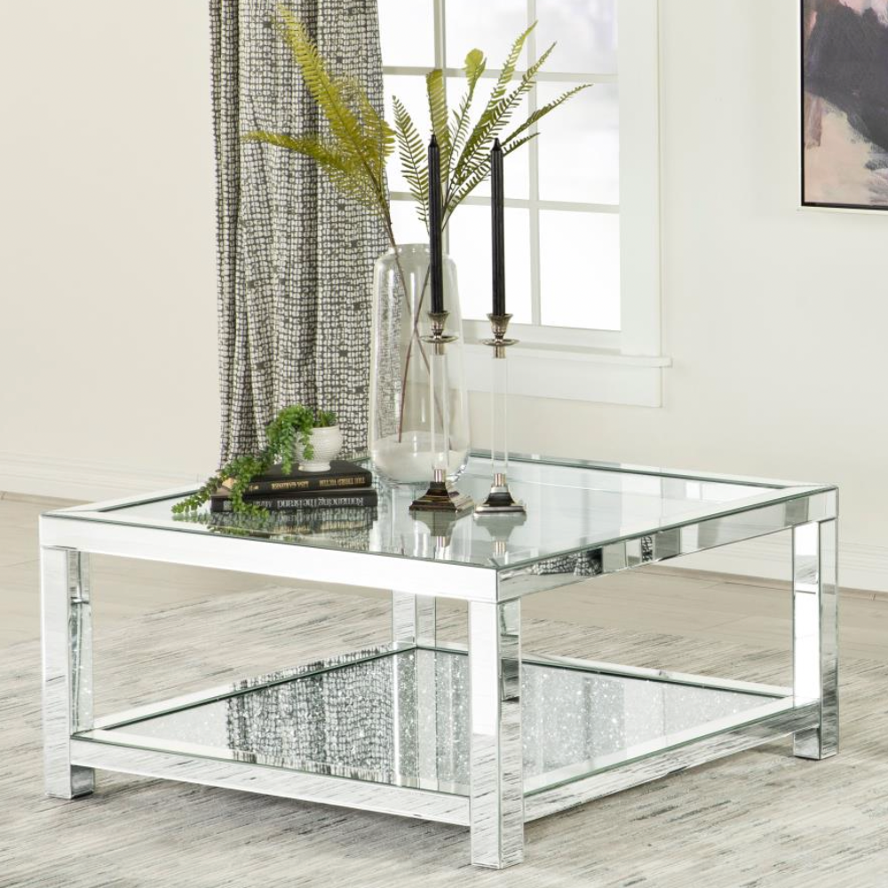 - Glamorous Design: Chic mirrored coffee table with refined detailing.