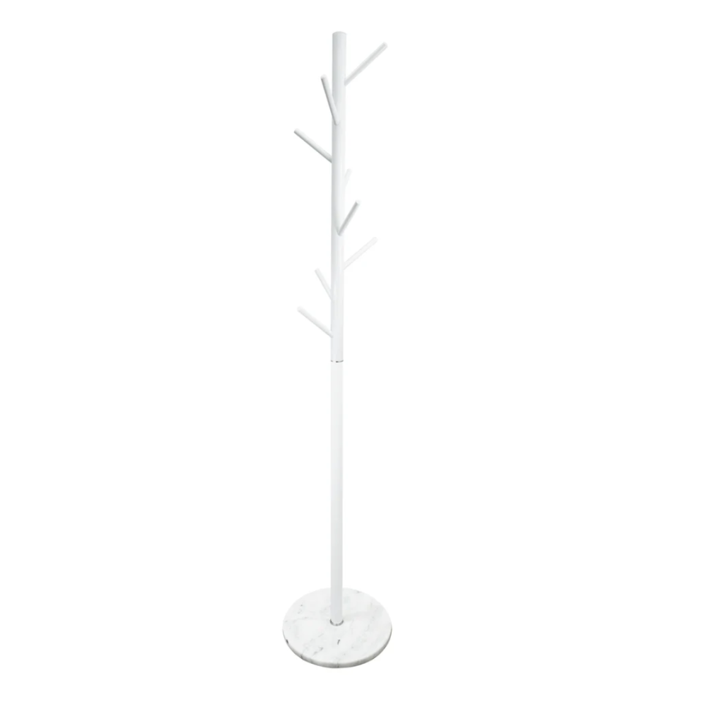 This modern coat and hat rack is expertly crafted from durable stainless steel with a sleek white marble base, combining style and functionality. Perfect for keeping your coats and hats organized, this stand adds a touch of contemporary elegance to any space. Its sturdy construction ensures long-lasting use while offering a practical storage solution that complements various décor styles.