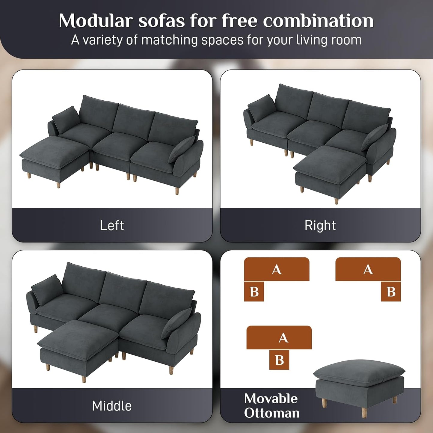 - Modular Flexibility: Five moveable modules allow for U-shape, L-shape, or sleeper configurations