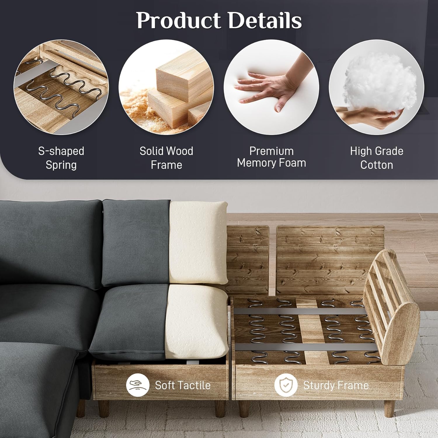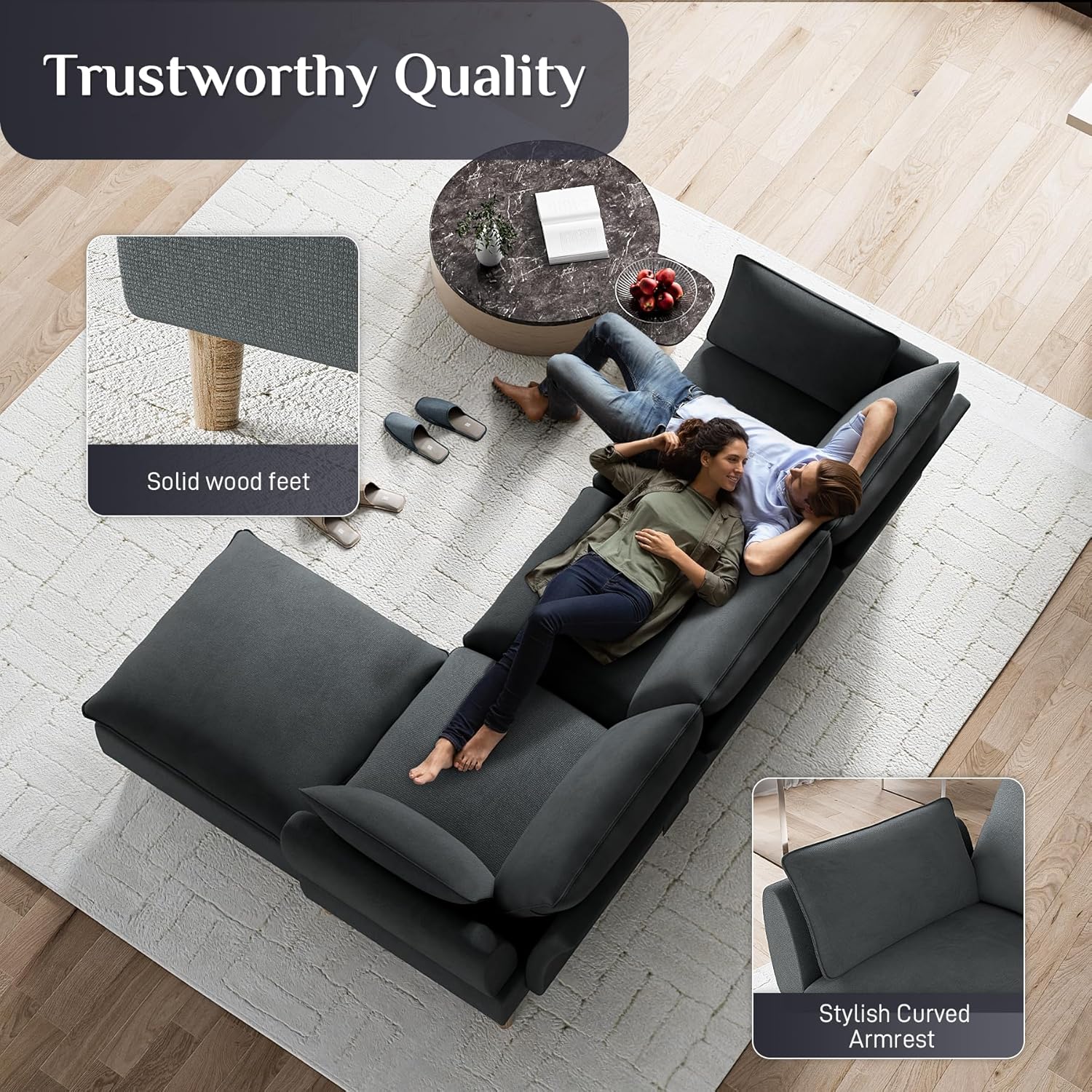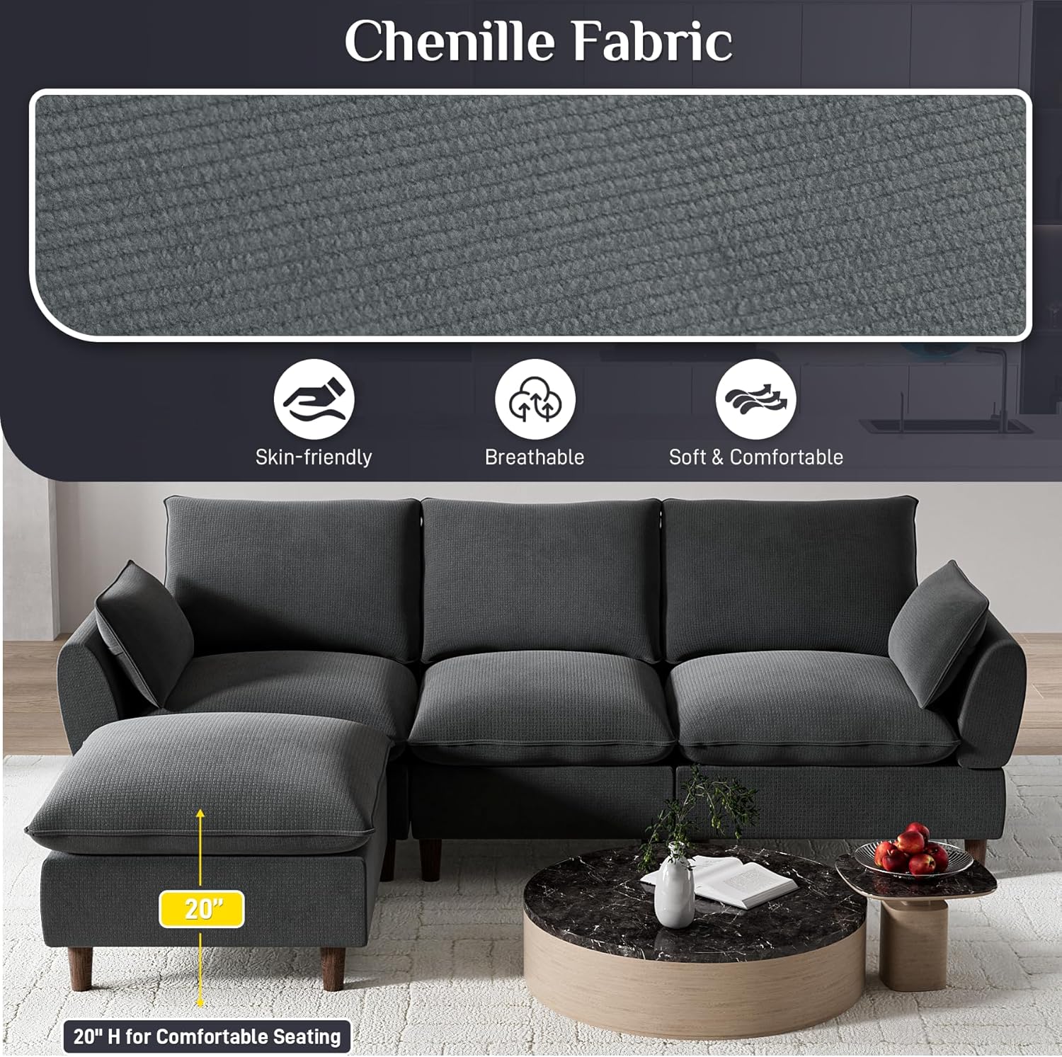 - Soft Chenille Fabric: Skin-friendly, breathable upholstery with removable, washable covers