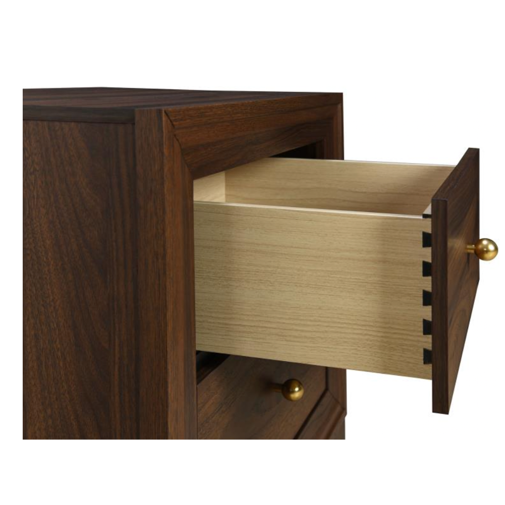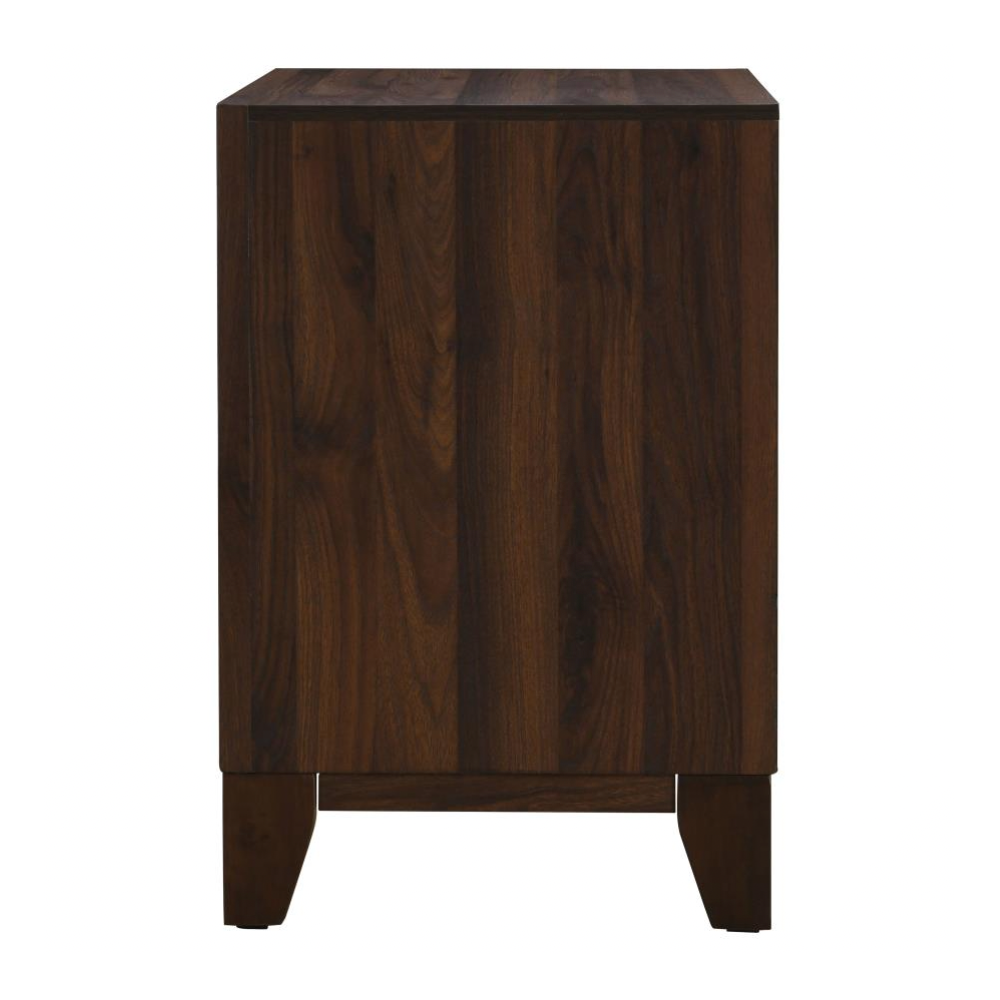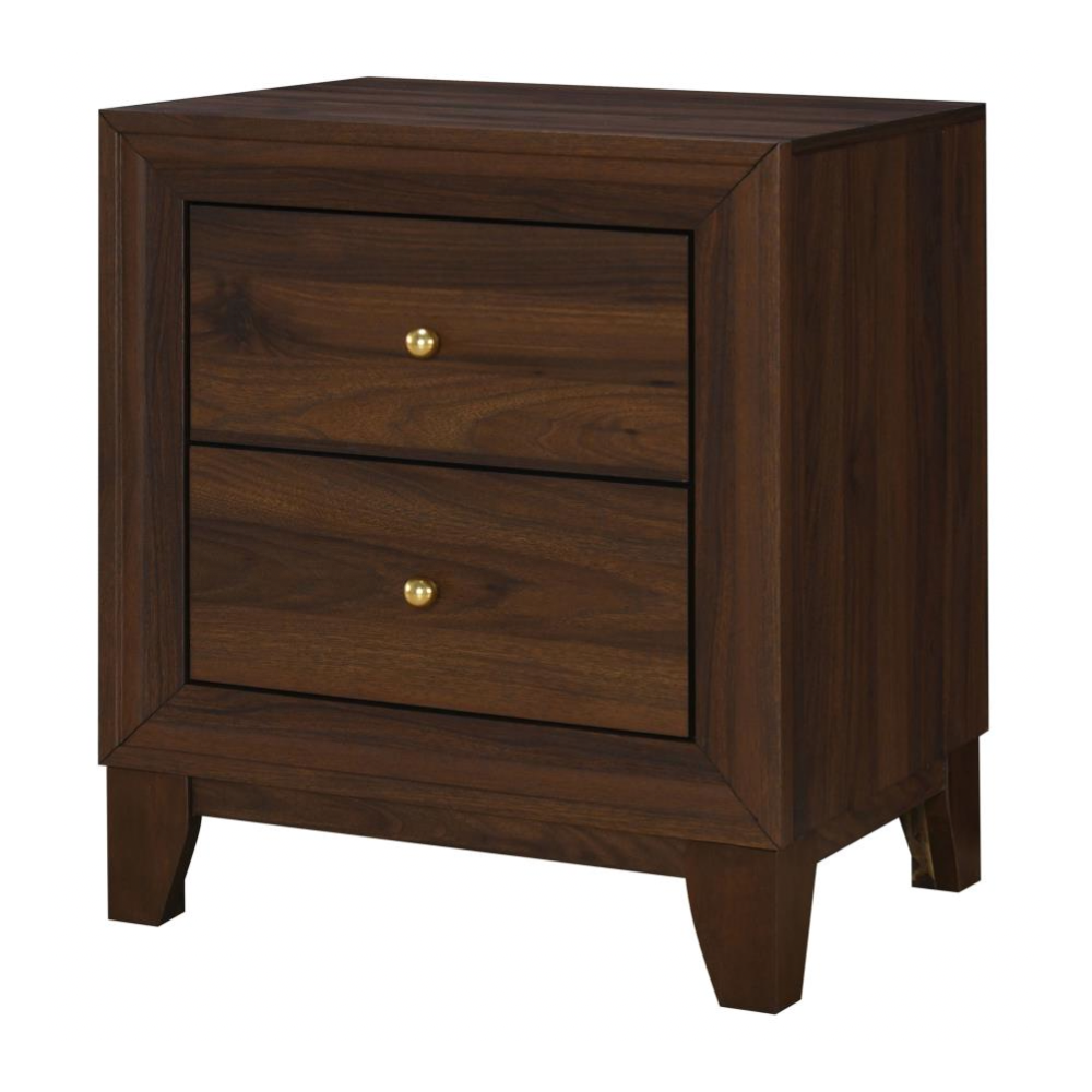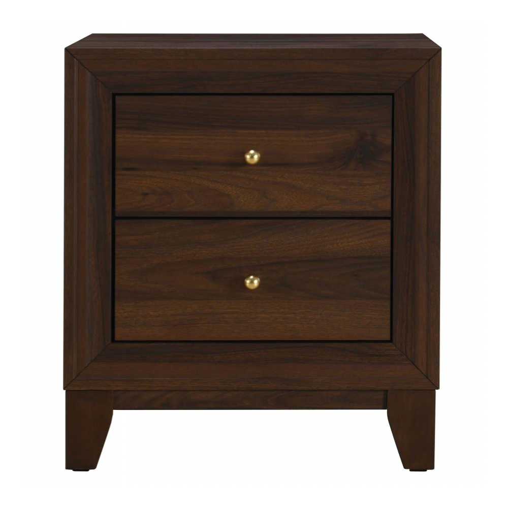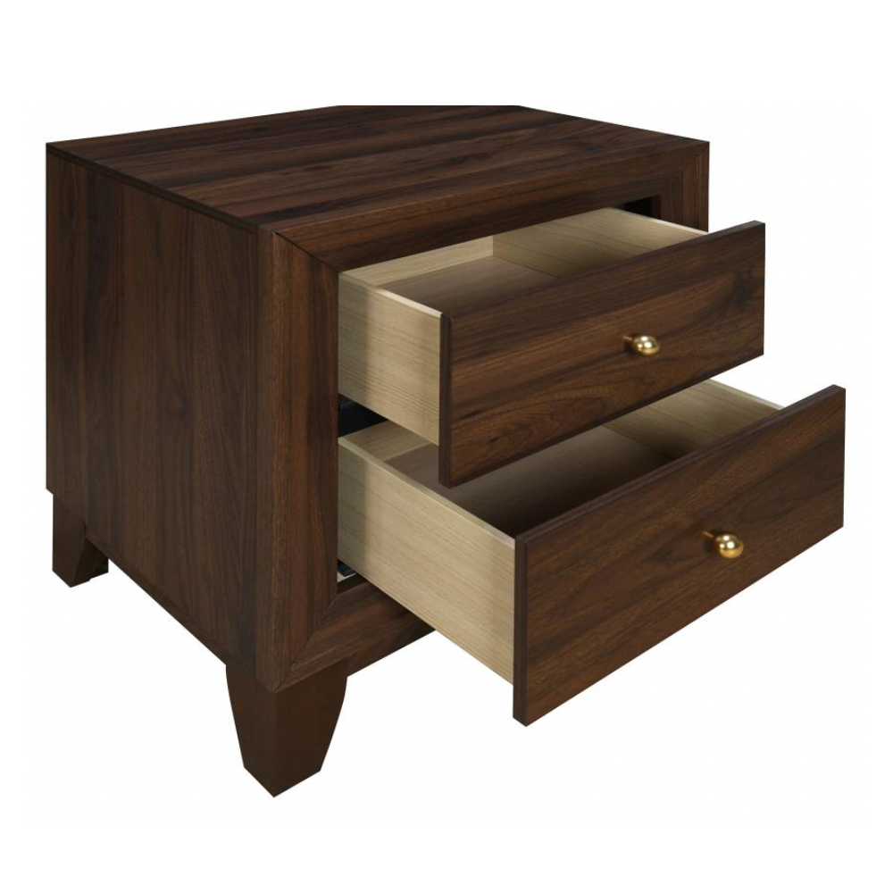 Bring warmth and modern charm to your bedside with this two-drawer nightstand. A rich walnut finish pairs with clean lines and gold accents for a refined look. Durable laminate construction and ample storage make it as functional as it is stylish.