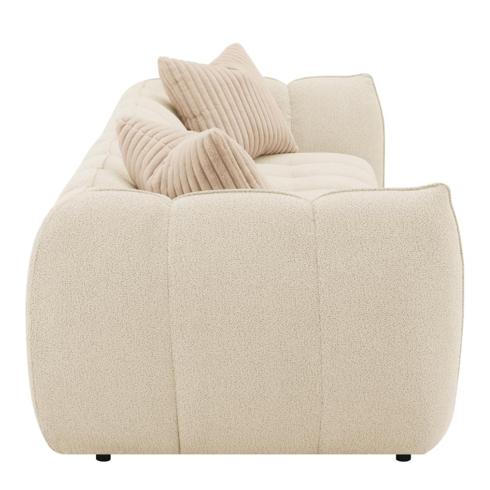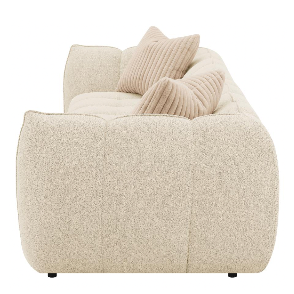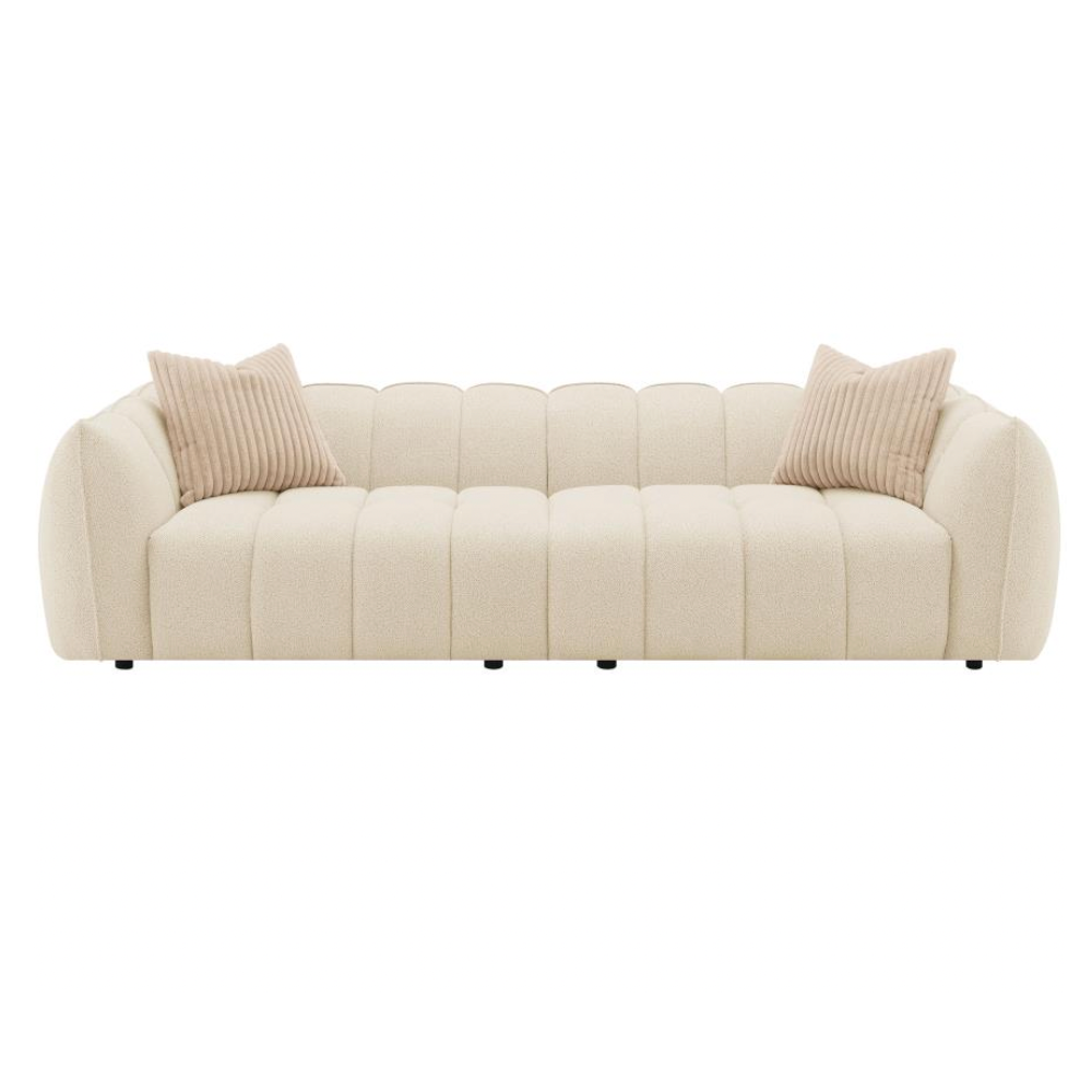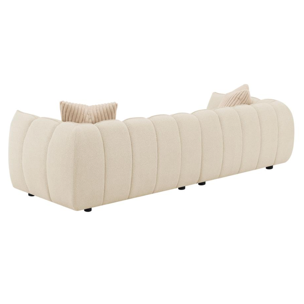 Create a cozy and stylish focal point in your living room with this modern extra-long sofa. Featuring a bubble-like silhouette and sand pebble boucle upholstery, it blends contemporary design with inviting warmth and texture. Wrap-around cushioning, a tufted waterfall bench seat, and wide piped armrests provide exceptional comfort for lounging or entertaining.