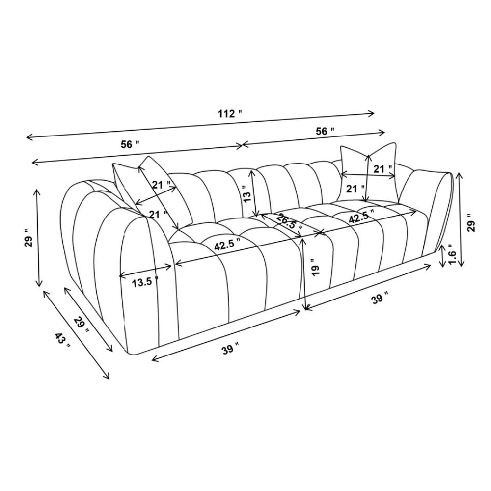 | 112.00" | 43.00" | 29.00" | 85.00" | 26.50" | 19.00" |