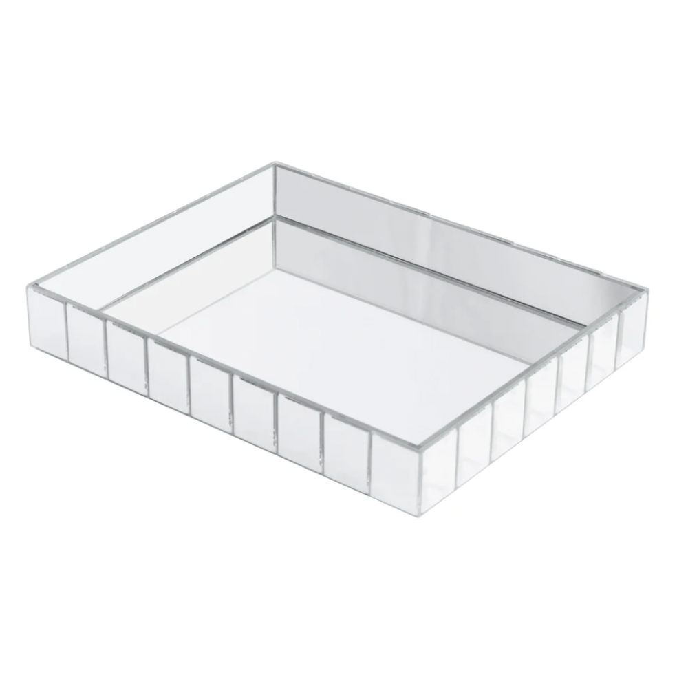 Elevate your bathroom decor with this elegant silver tray, designed to add a touch of sophistication to your master or guest bathroom. The sleek design offers the perfect space to neatly display cosmetics, perfumes, toiletries, and more. Versatile enough to be used beyond the bathroom, this chic tray also serves as a beautiful decorative piece in your living room or vanity.